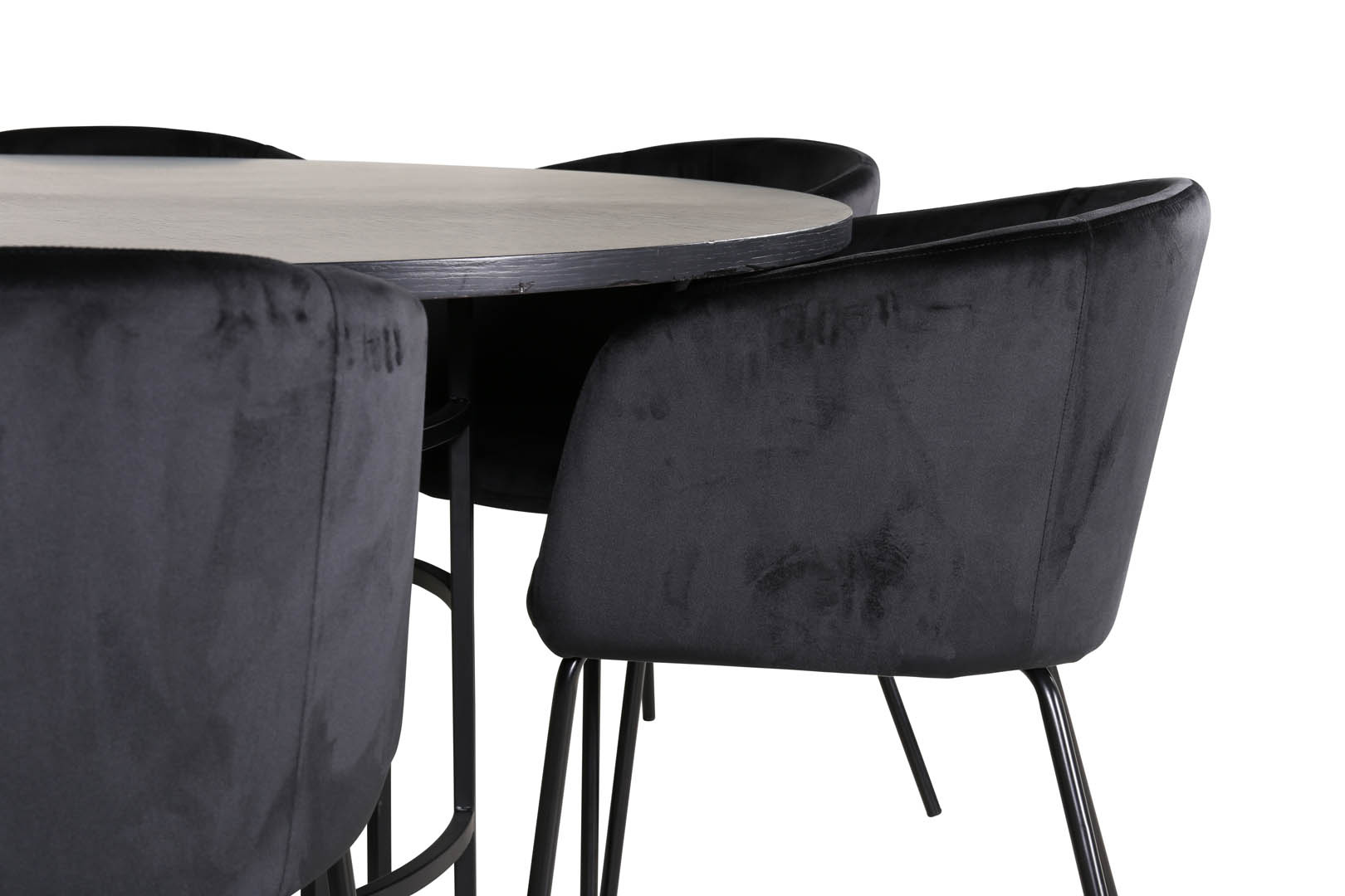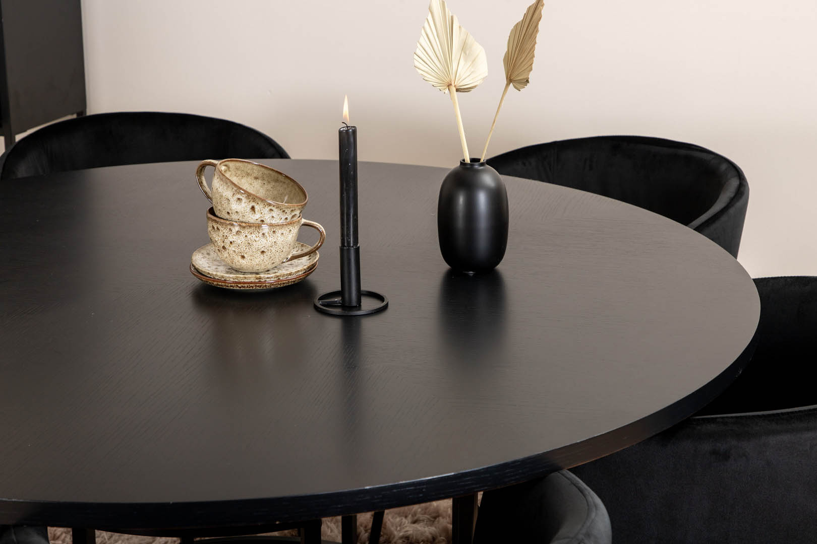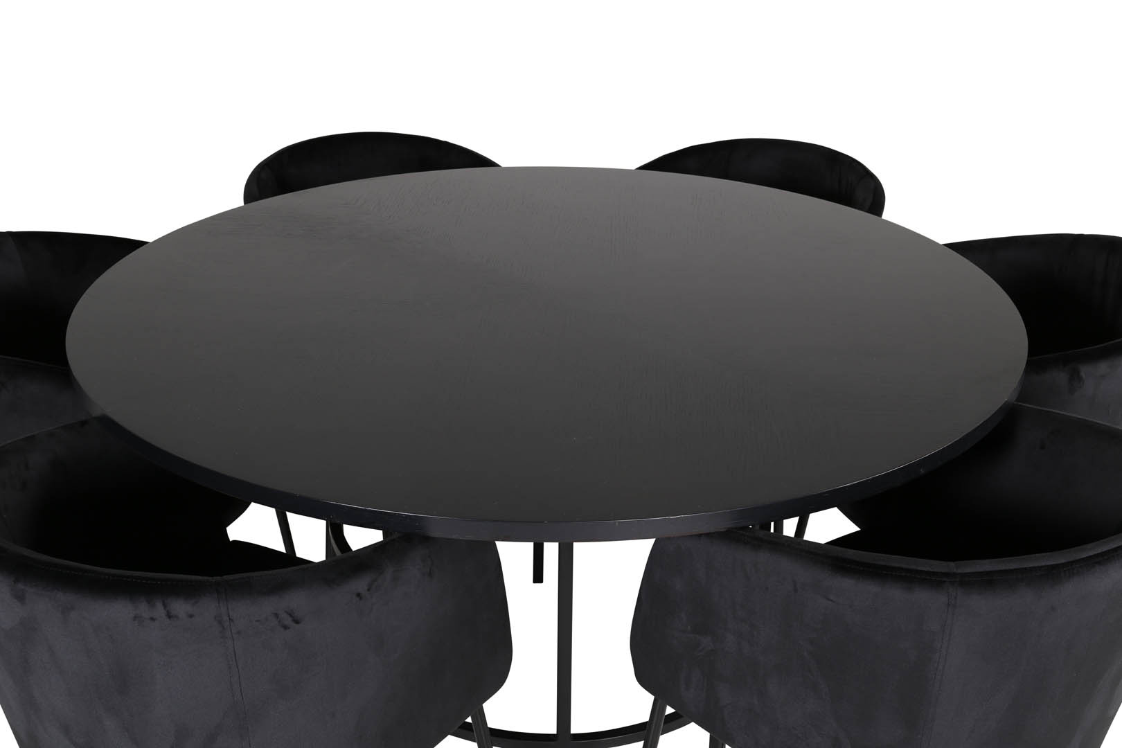 ebuy24 Copenhagen eethoek eetkamertafel bruin en 6 Berit eetkamerstal velours zwart.