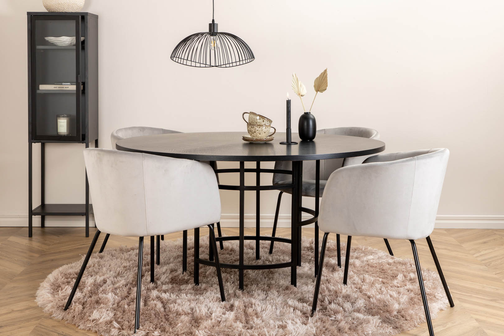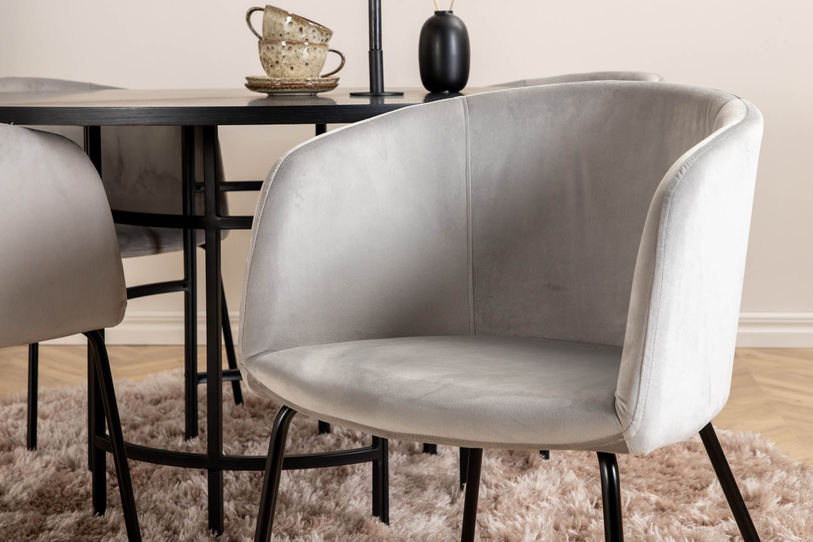 ebuy24 Copenhagen eethoek eetkamertafel bruin en 4 Berit eetkamerstal velours grijs.