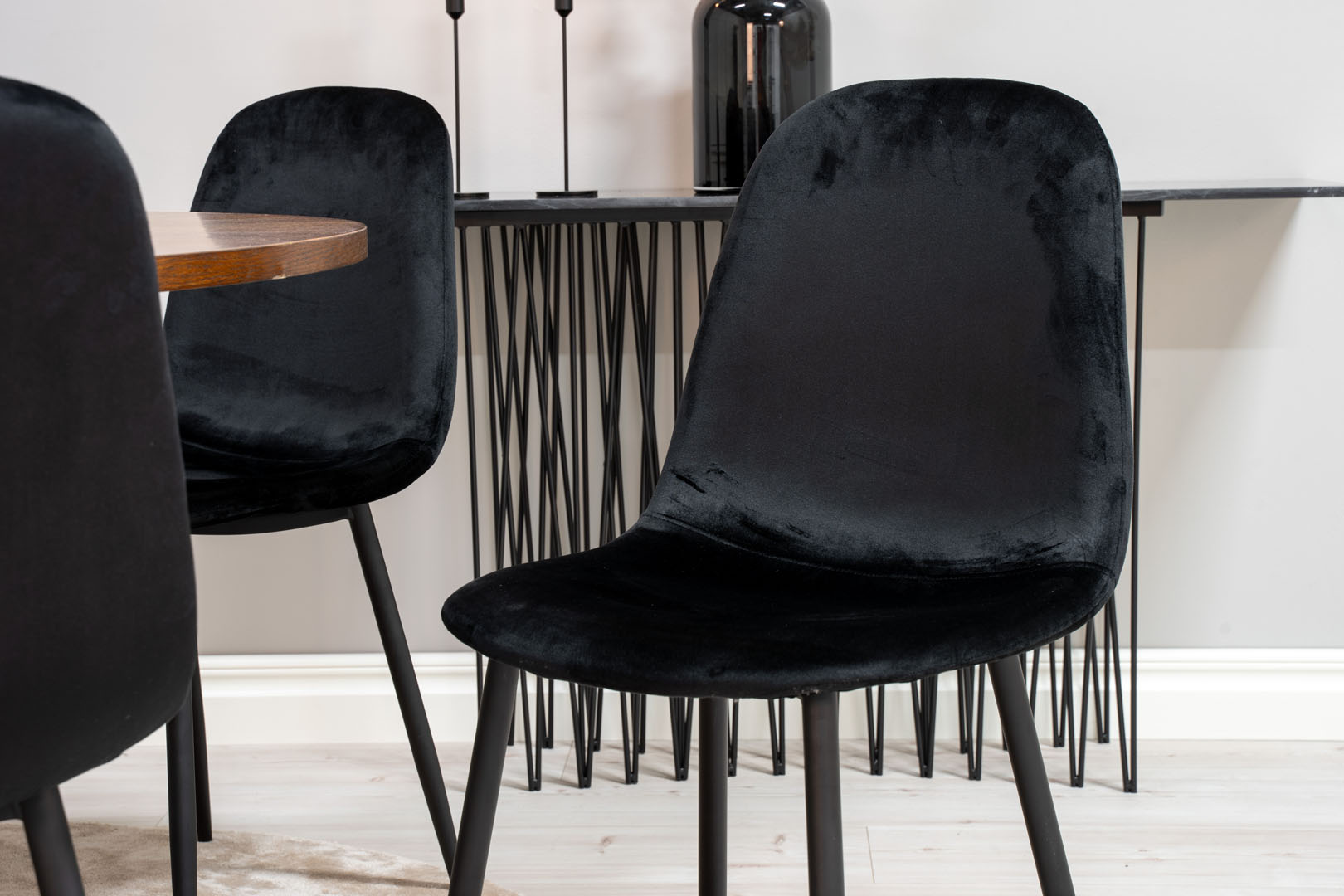 ebuy24 Copenhagen eethoek eetkamertafel bruin en 6 Polar eetkamerstal velours zwart.