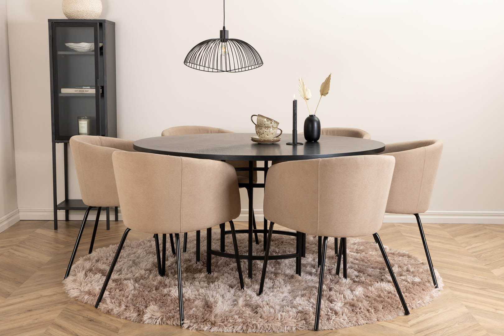 ebuy24 Copenhagen eethoek eetkamertafel bruin en 6 Berit eetkamerstal beige.