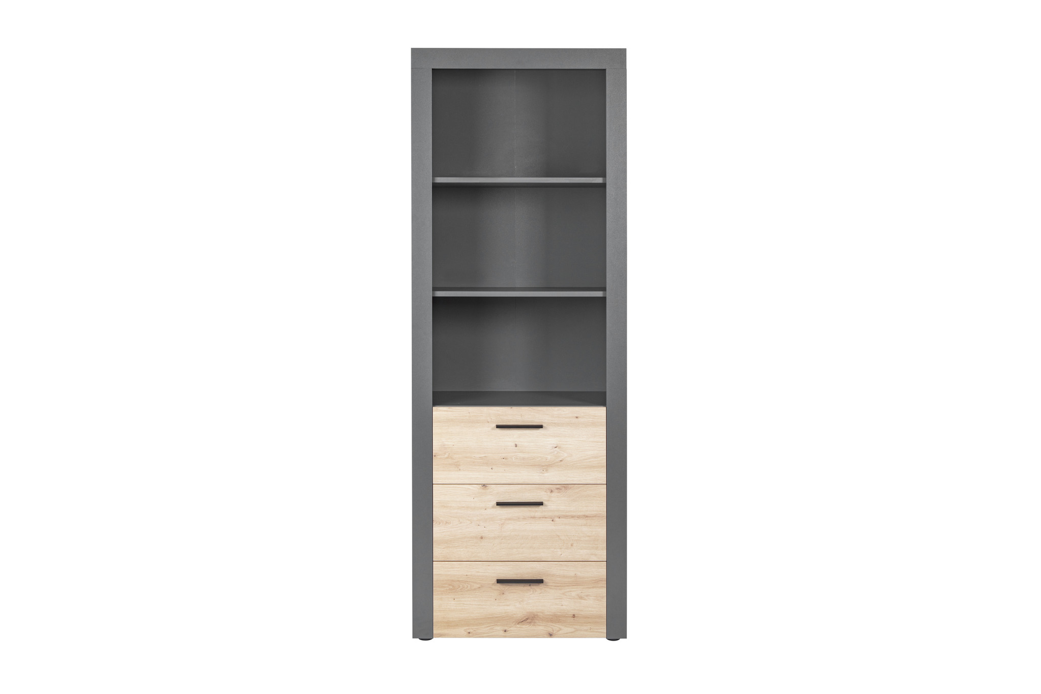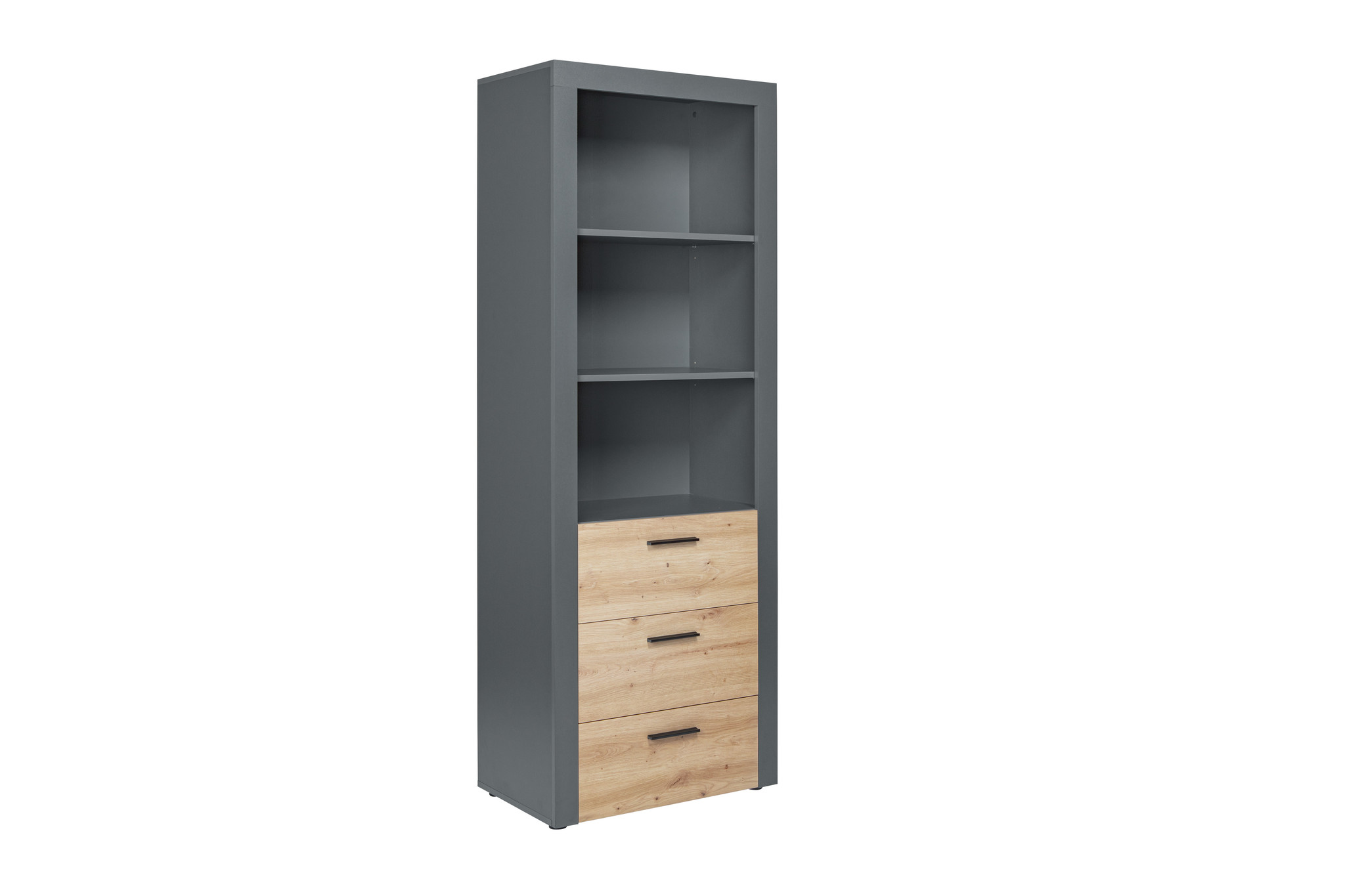 Corbeto wandkast 3 lades, 3 open vakken antraciet, eiken Artisanale decor.