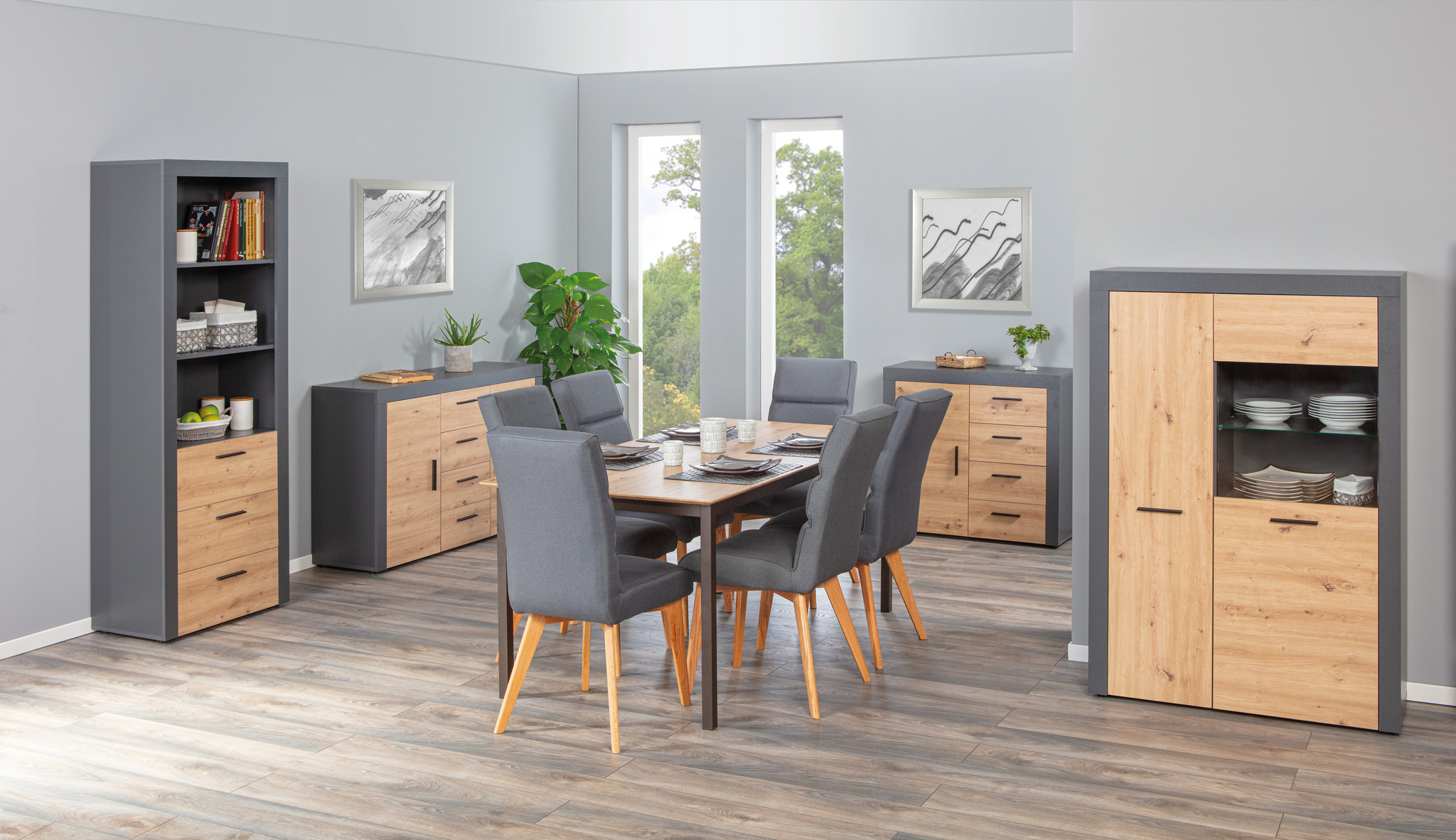 Corbeto wandkast 3 lades, 3 open vakken antraciet, eiken Artisanale decor. Je ontvangt meubels van een goede kwaliteit met een aangenaam comfort, gemaakt in een stijlvol en mooi design. Onze meubels zijn zeer aantrekkelijk geprijsd. Creëer uw eigen persoonlijke stijl met een nieuw meubel. Combineer met kleinmeubels of een paar mooie woonaccessoires. Hier verkrijg je de nieuwe woningtrends, zoals je ze in tijdschriften en magazines ziet. Bij ons vindt u unieke, praktische en comfortabele meubels met elk zijn eigen, mooi en apart design.