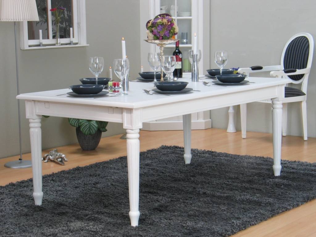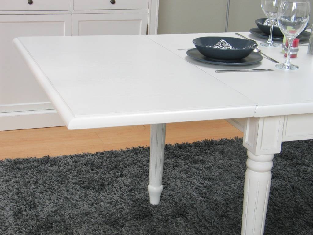 Mozart eethoek 100x180/280 cm incl. 2 verlengbladen antiek wit met 2+6 Rococo stoelen antiek wit/zwart.