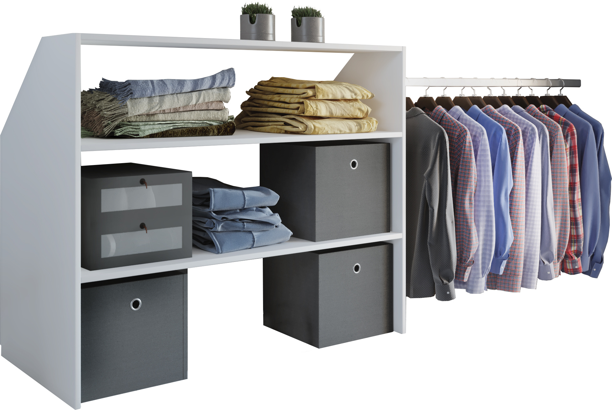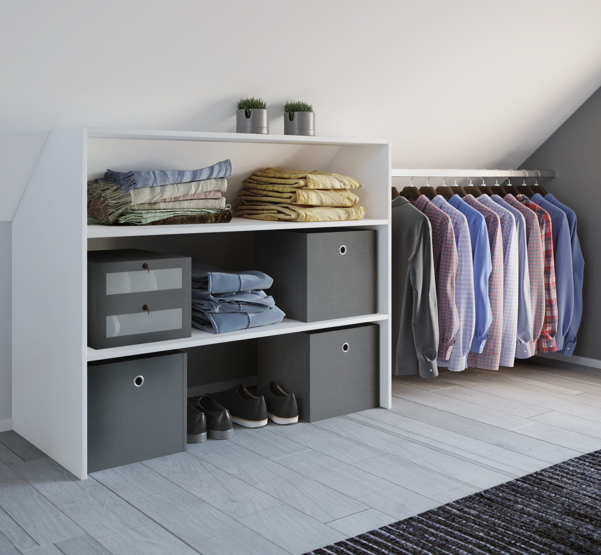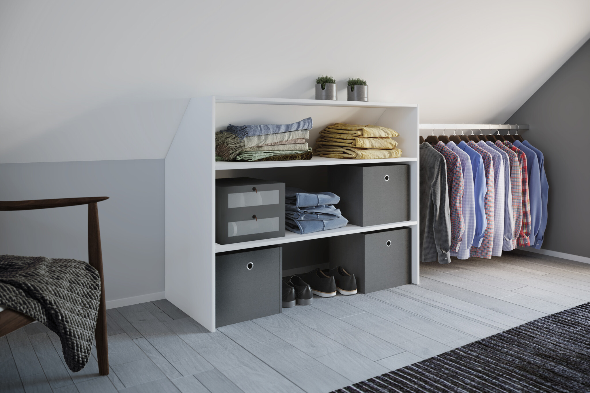 ebuy24 Dacho wandkast , plank, kleerkast schuine wand 2 planken en 1 kledingstangwit.