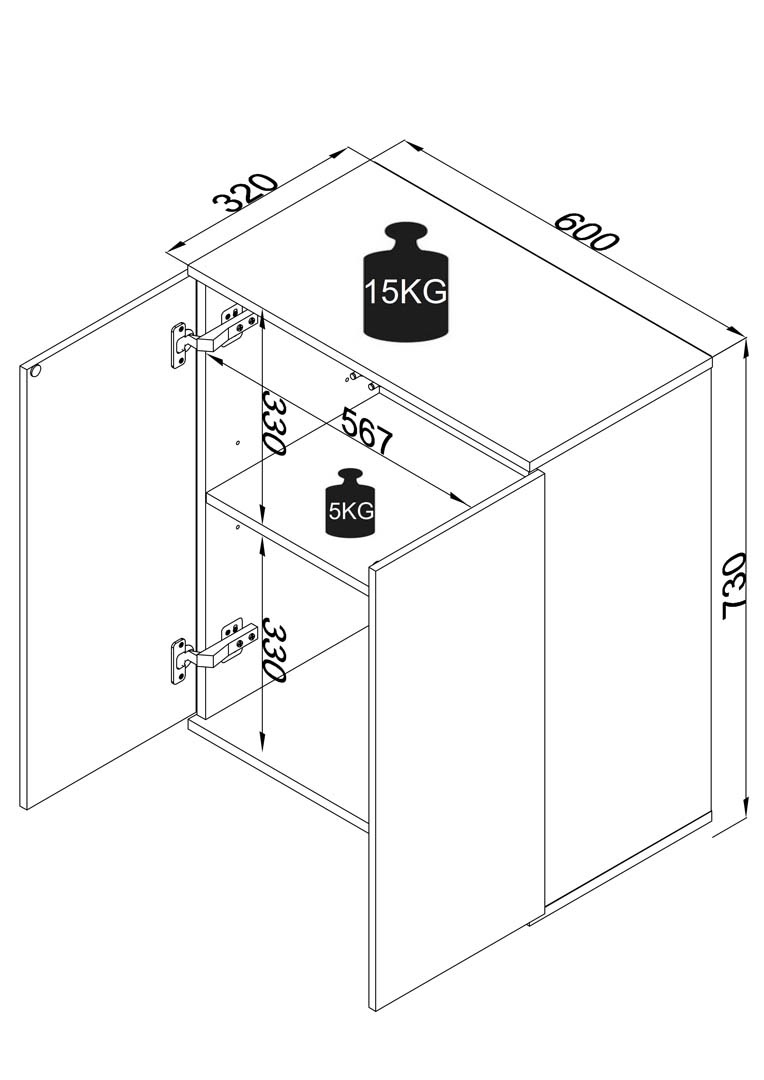 Productafmetingen: Breedte: 60 cm Diepte: 32 cm Hoogte: 73 cm