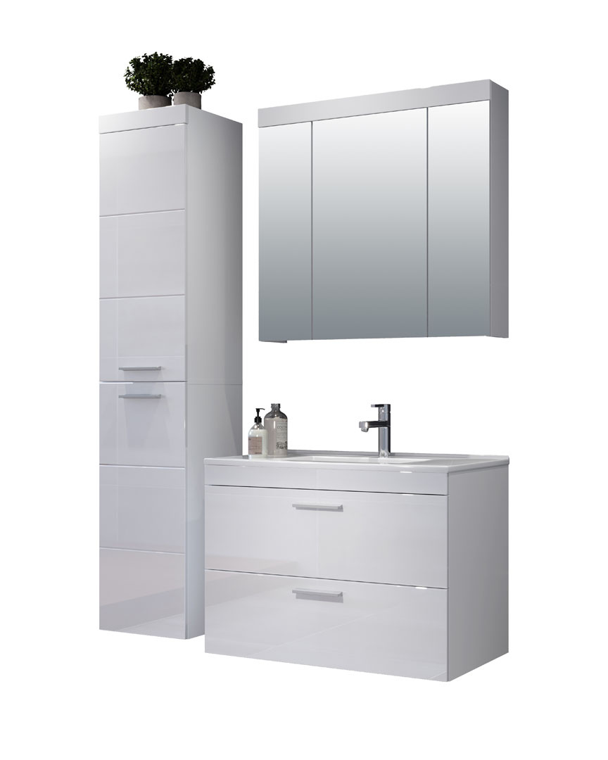 ebuy24 Devon badkamer B met spiegelkast wit, wit hoogglans.