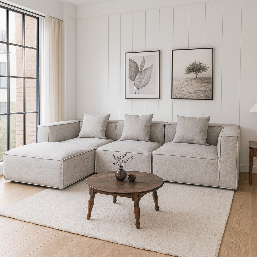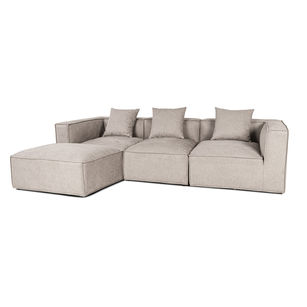 Deze modulaire bank combineert flexibele functionaliteit met moderne esthetiek. De brede chaise longue nodigt uit tot ontspannen en de losse kussens zorgen voor zowel ondersteuning als comfort. Het neutrale textiel en de strakke lijnen van de bank passen ...Lees uitgebreide product informatie