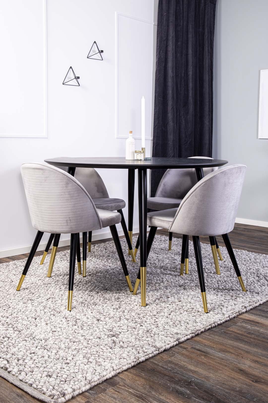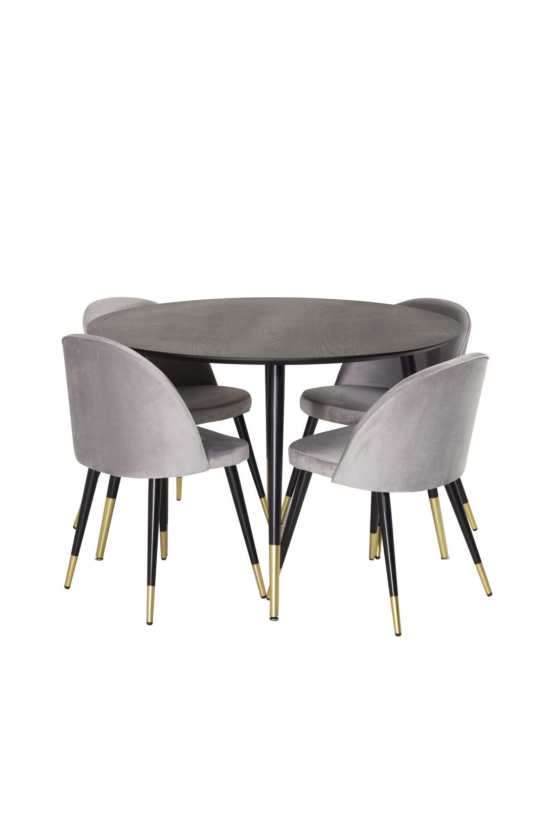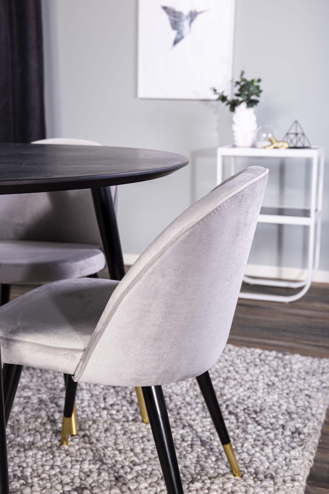ebuy24 Dipp eethoek tafel zwart en 4 Velvet stoelen grijs.