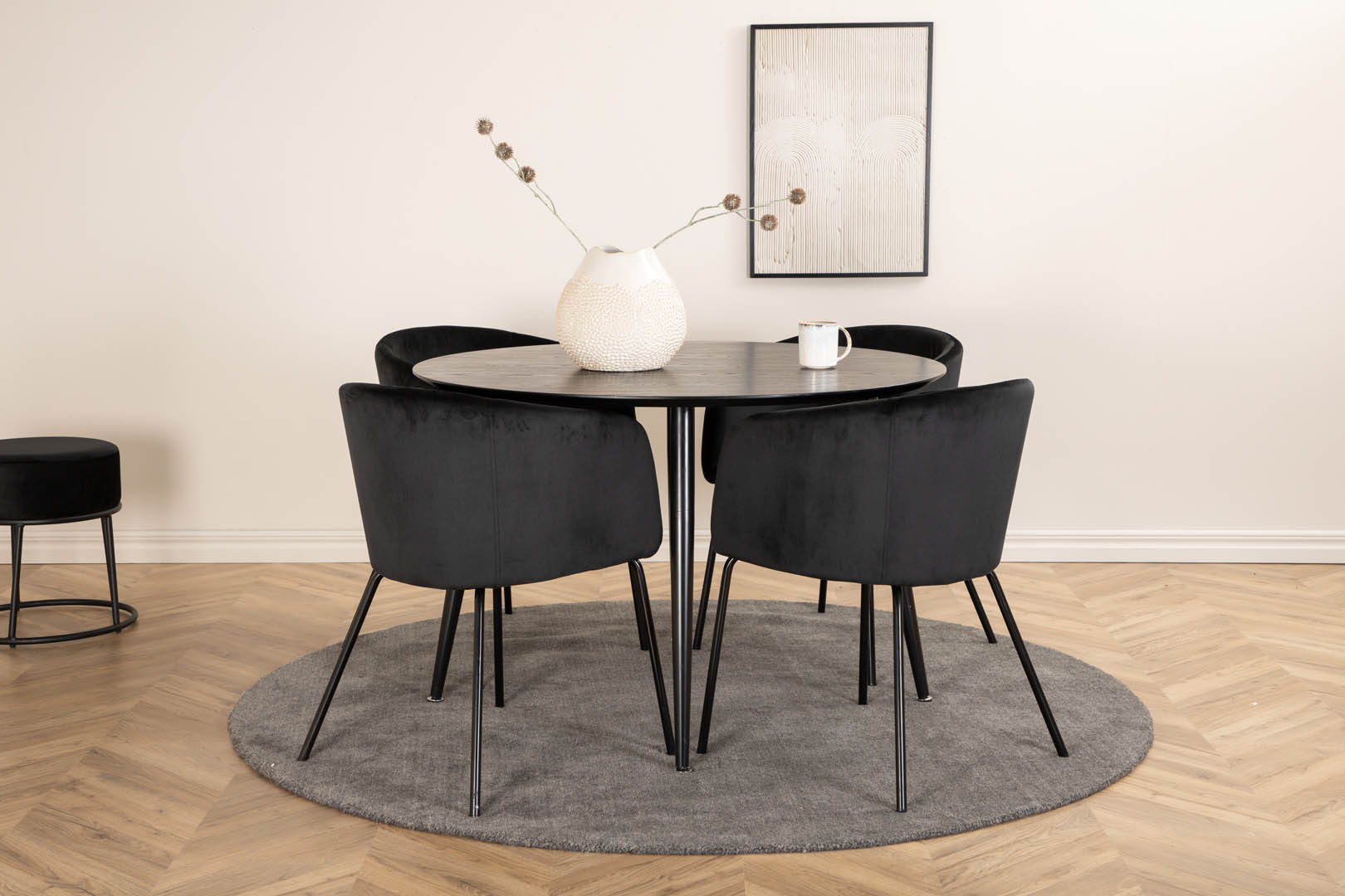 ebuy24 DippØ115BLBL eethoek eetkamertafel zwart en 4 Berit eetkamerstal velours zwart.