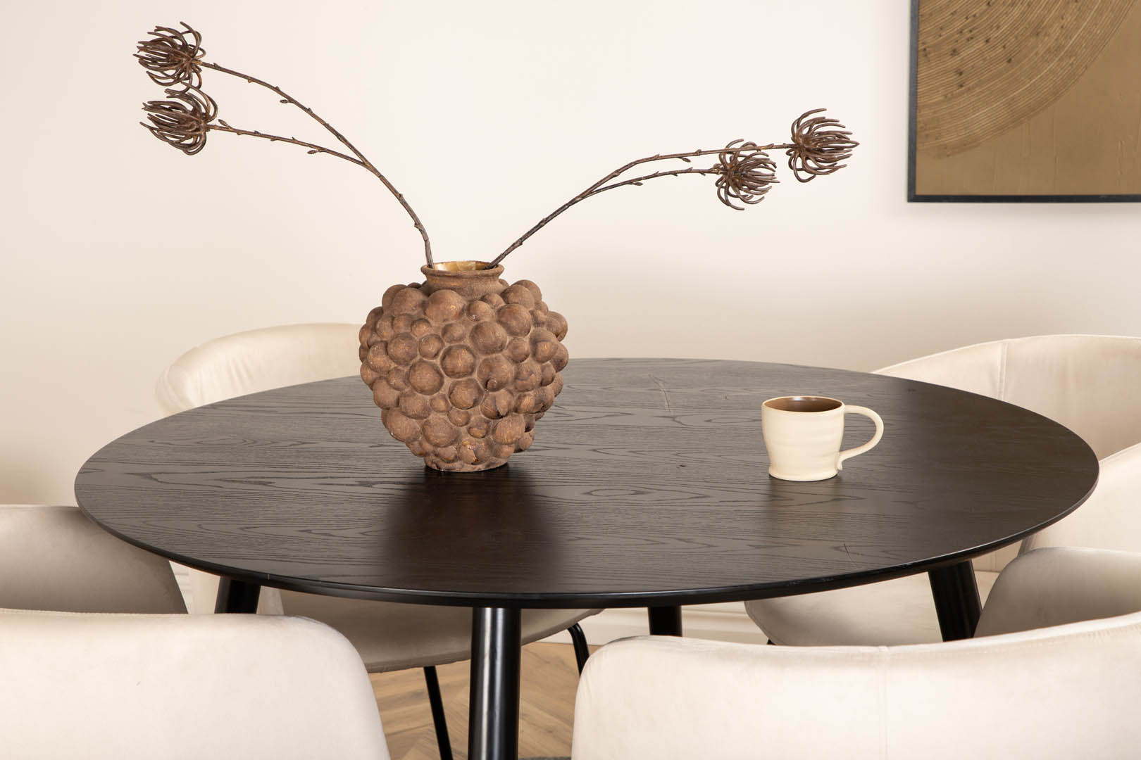 ebuy24 DippØ115BLBL eethoek eetkamertafel zwart en 4 Berit eetkamerstal velours beige.
