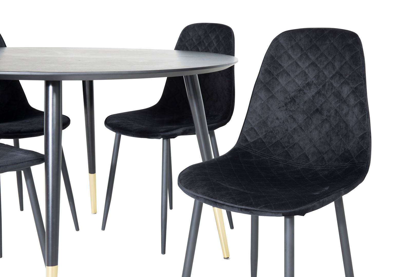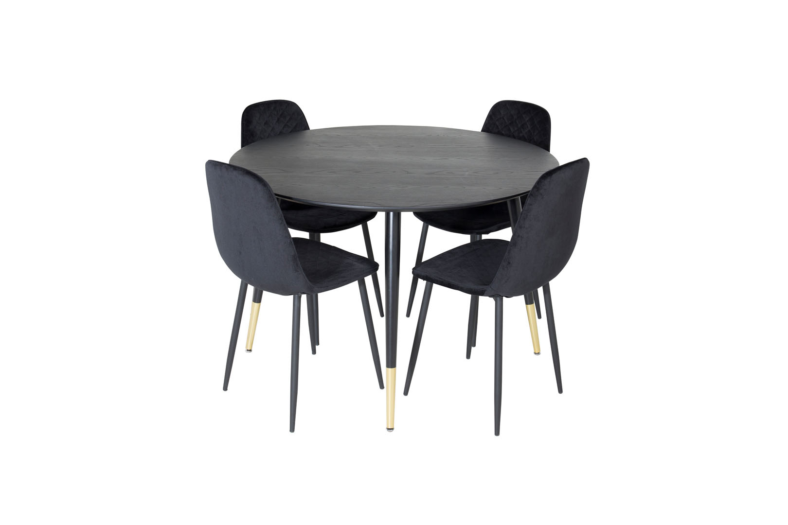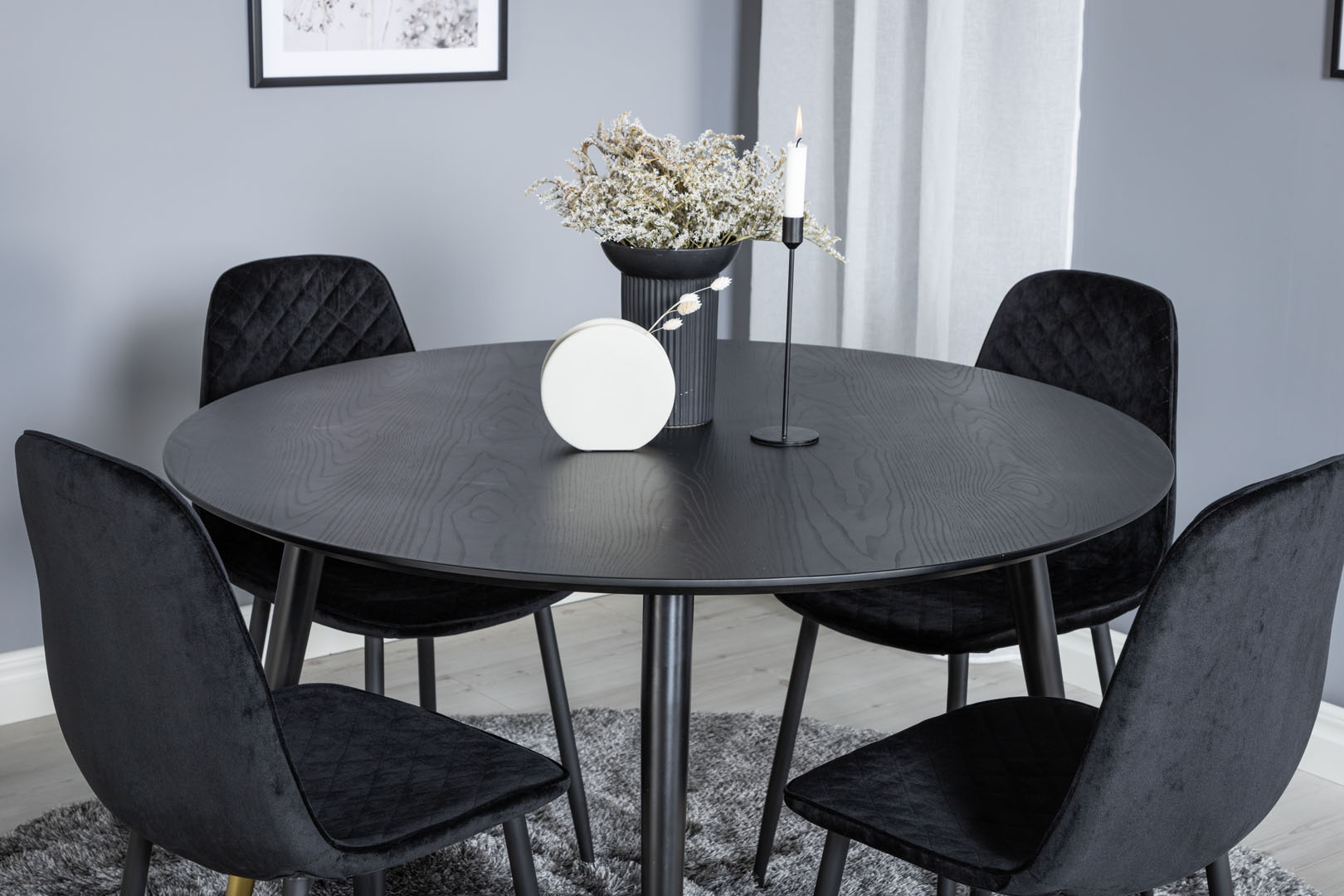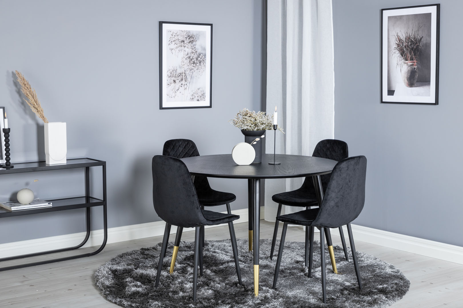 ebuy24 DippØ115BLBR eethoek eetkamertafel zwart en 4 Polar Diamond eetkamerstal velours zwart.