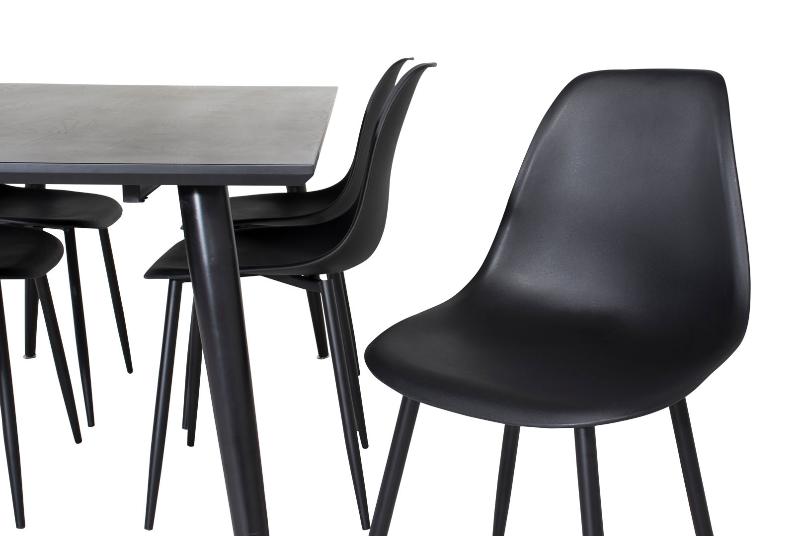 ebuy24 Dipp180x90BLBL eethoek eetkamertafel zwart en 6 Polar eetkamerstal zwart.