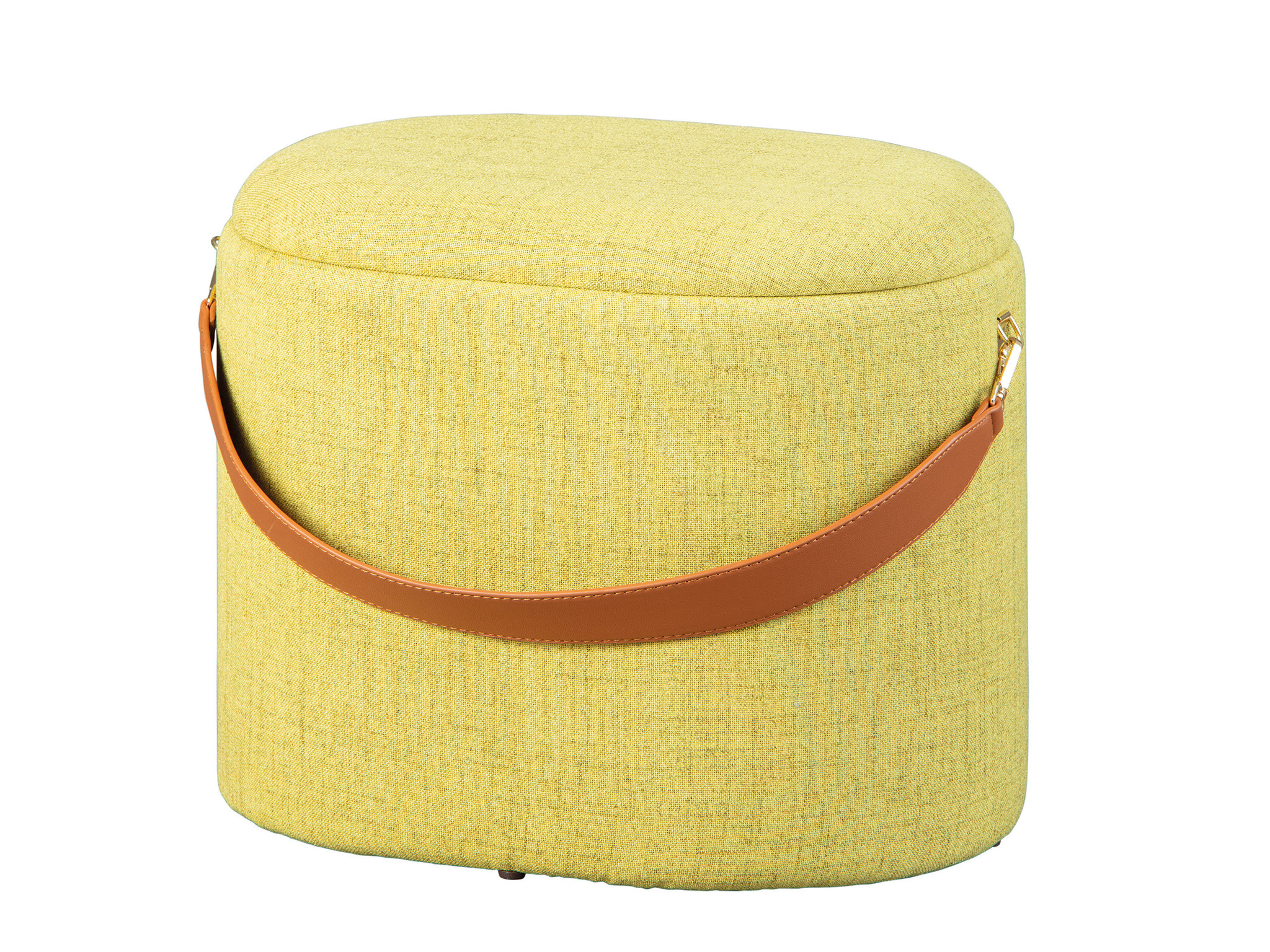 Dirax poef , krukje met opbergruimte geelgroen en bruin.