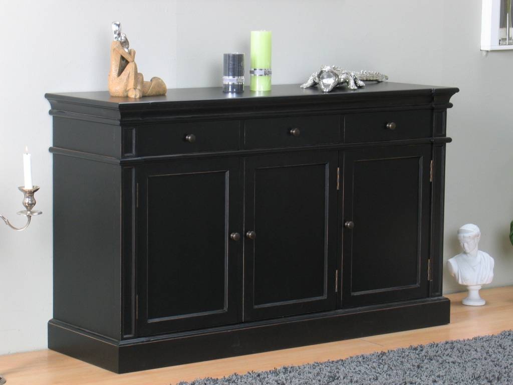 Zwart dressoir Mozart. Haal dit kwaliteitsmeubel nu in huis. Wordt opgebouwd geleverd: uitpakken en neerzetten dus! Past goed bij de overige meubelen uit de serie Mozart. ...Lees uitgebreide product informatie
