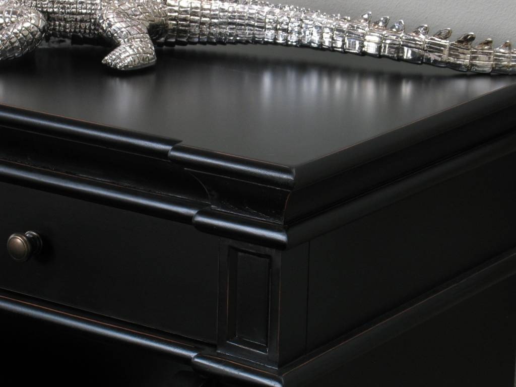 - Massief hout, zwart gelakt, antiek gepatineerd
