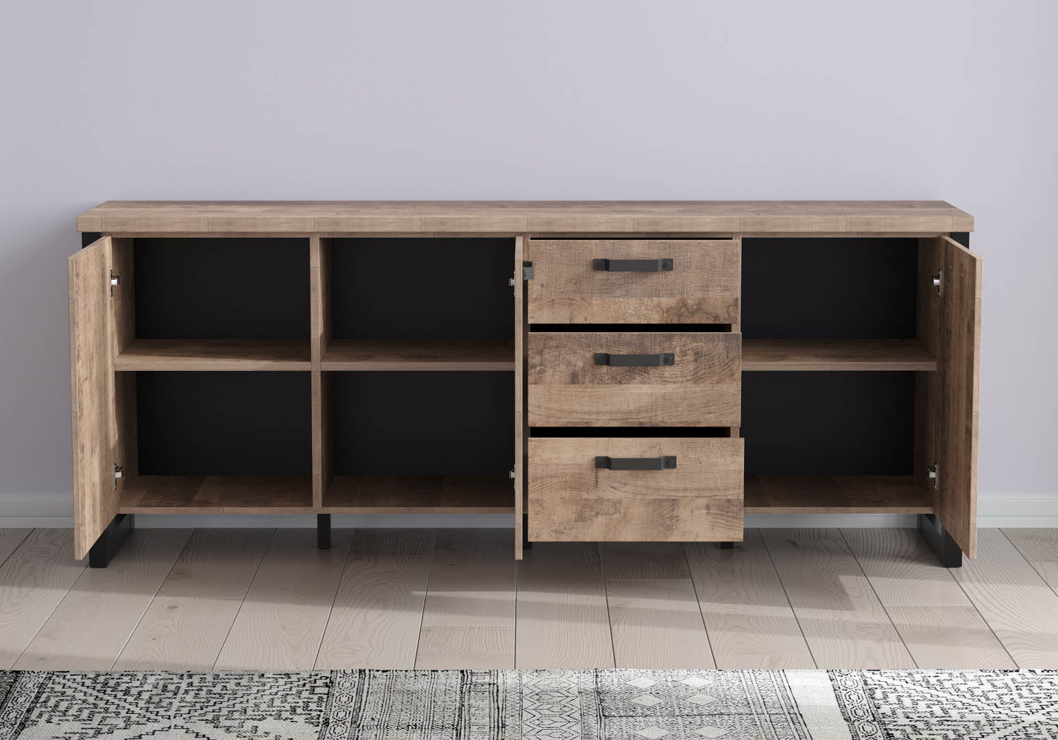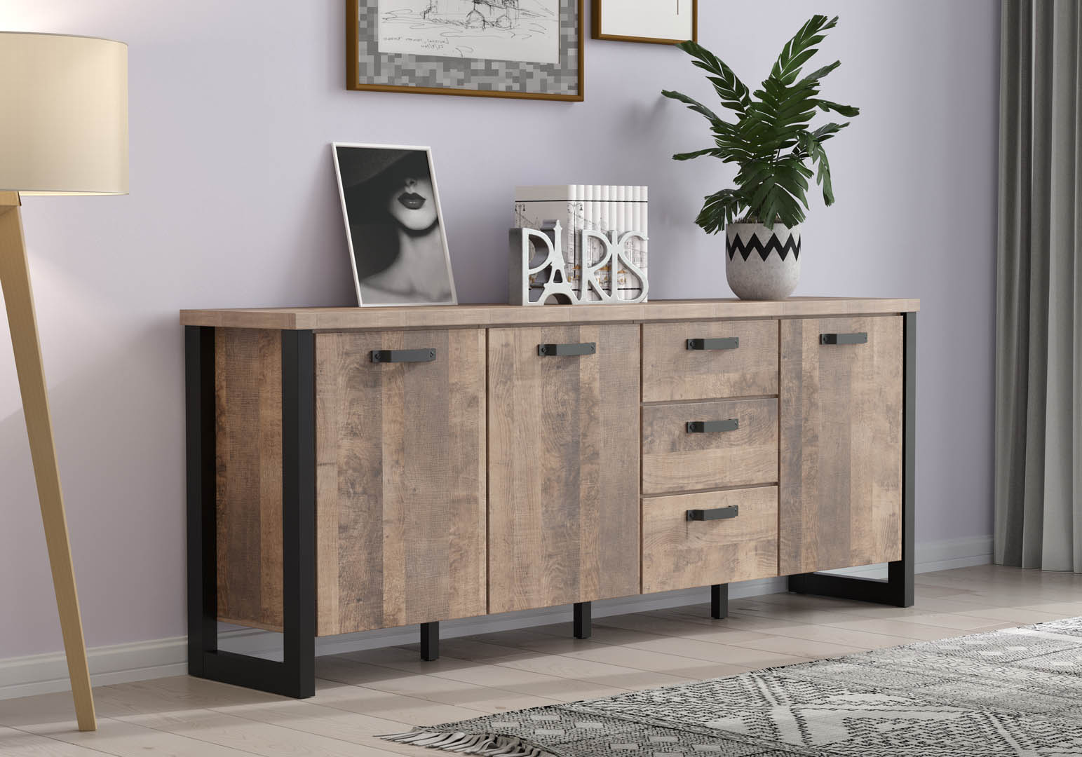 ebuy24 Emile dressoir 3 deuren, 3 laden, eik decor.