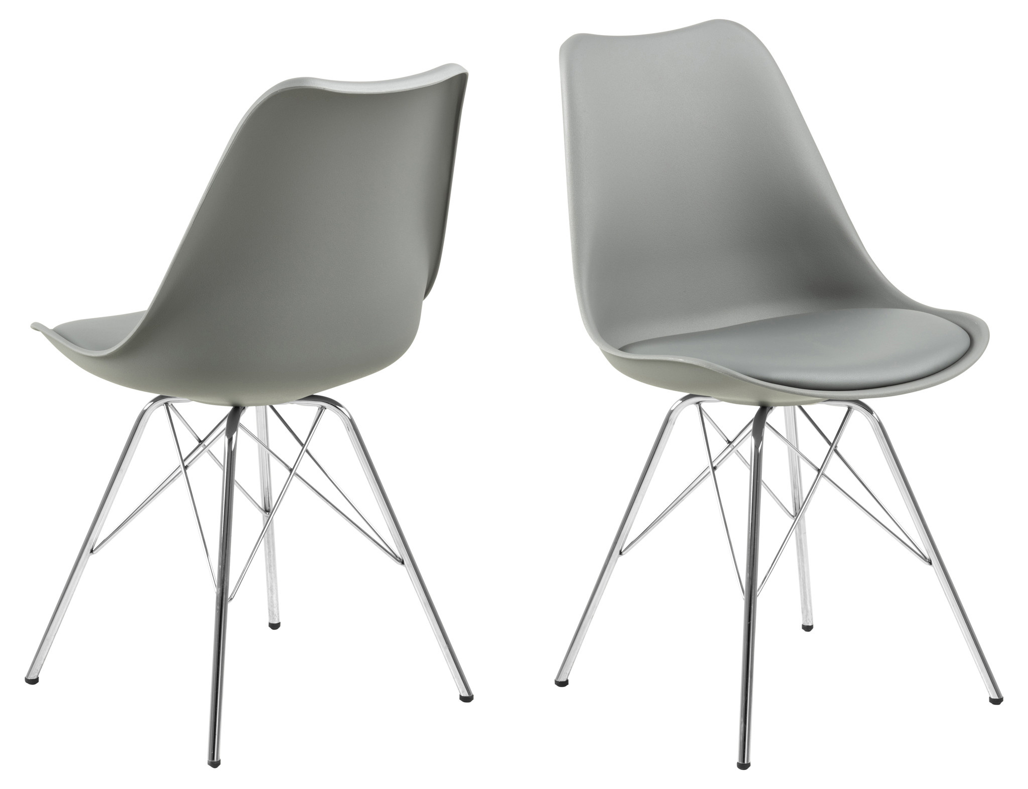 Erin eetkamerstoel grijs, chroom. Opgepast! De stoelen dienen per 4,8,12, aangekocht te worden, daar ze per 4 verpakt zijn. Let op! De prijs is per stuk.