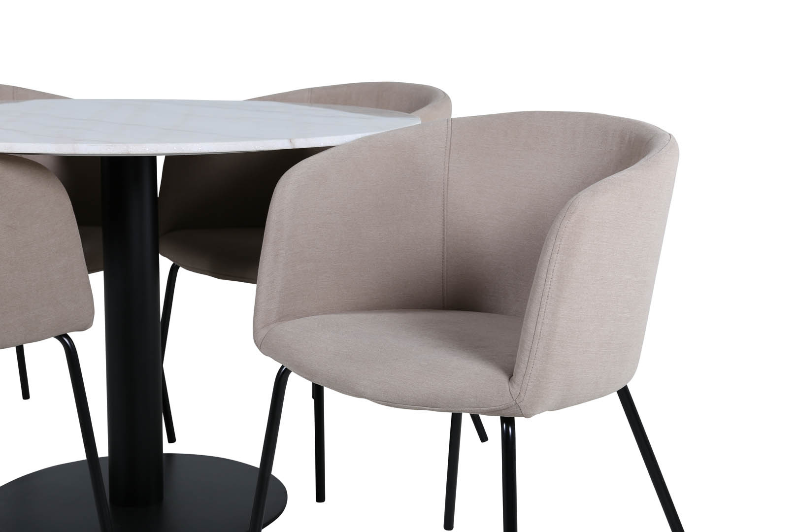ebuy24 EstelleØ106WHBL eethoek eetkamertafel wit, marmer en 4 Berit eetkamerstal beige.