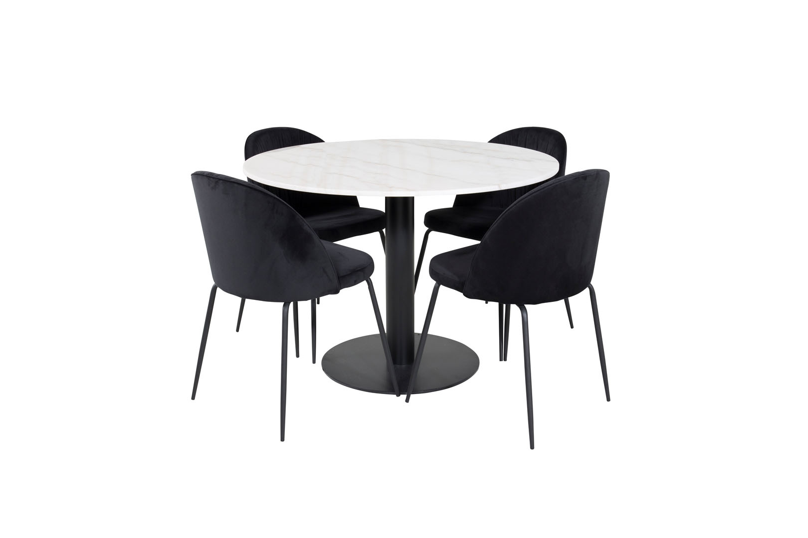 ebuy24 EstelleØ106WHBL eethoek eetkamertafel wit, marmer en 4 Wrinkles eetkamerstal velours zwart.