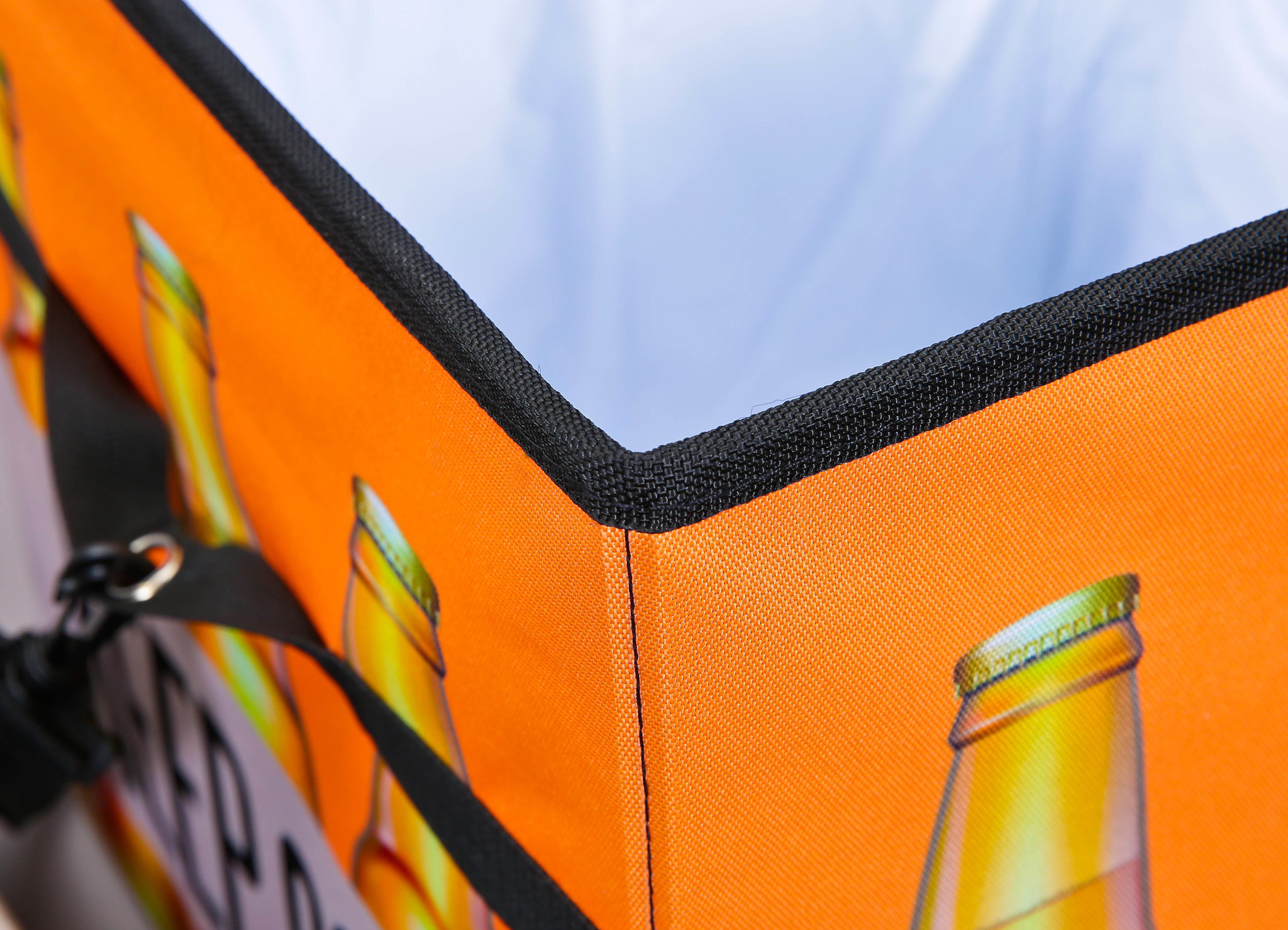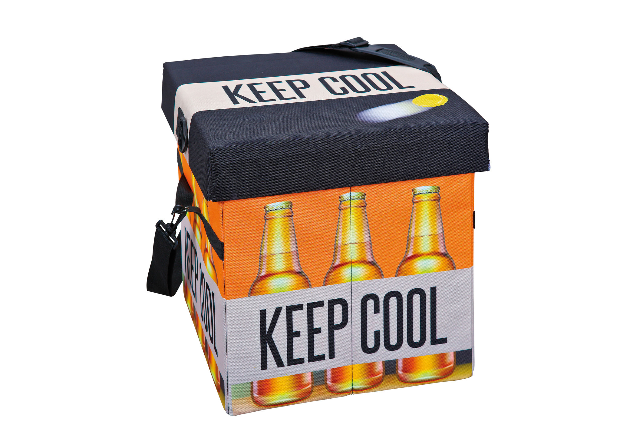 Fabo opbergdozen koeltas, kruk, draagriem, zwart, wit, oranje.