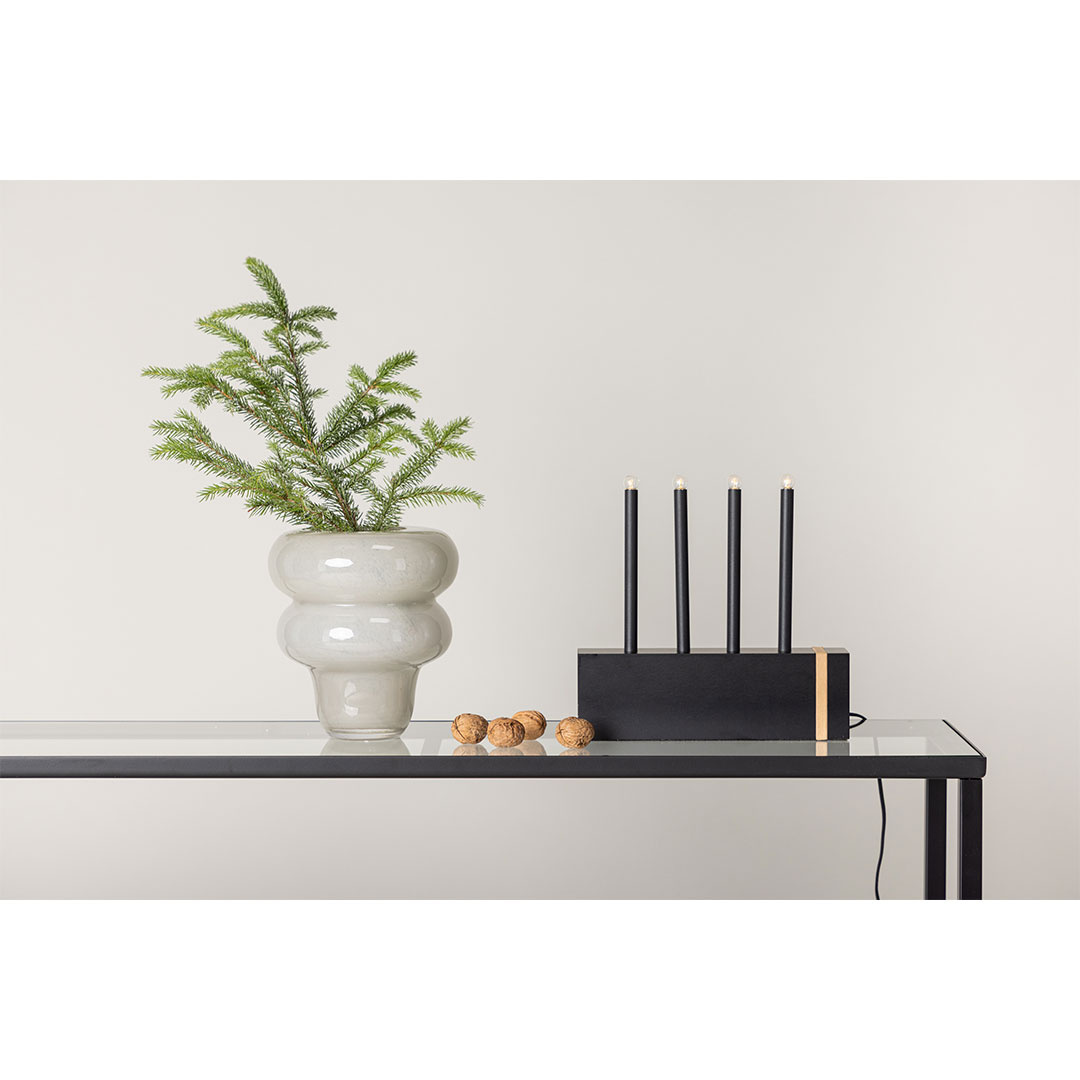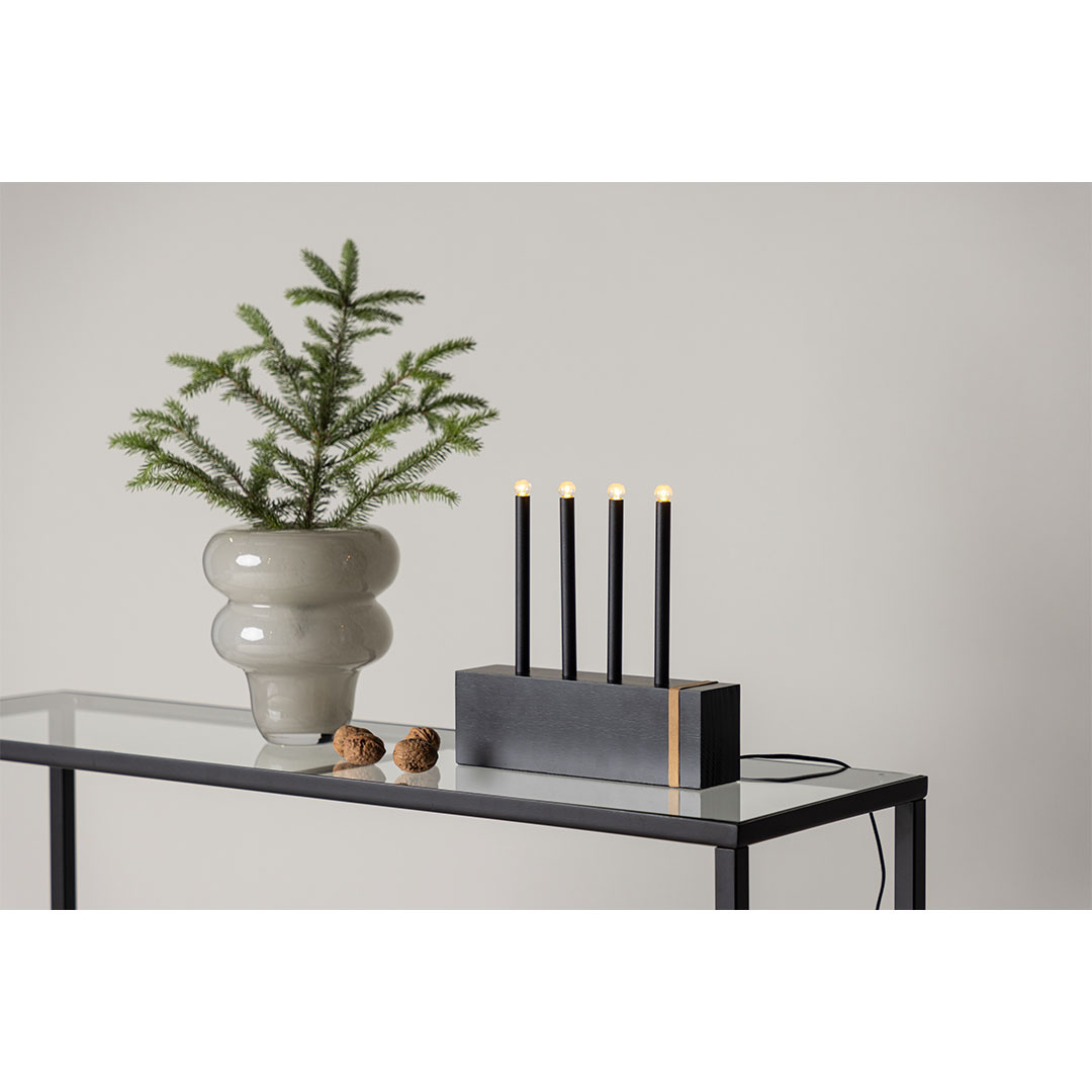 De Fjällberget adventspodium elektrisch 4 lichts zwart is een kerstverlichting in zwarte kleur die zowel stijl als functionaliteit in uw huis brengt. Fjällberget adventsstandaard elektrisch 4 lichts zwart. Lichtbron: E10. Watt (W): Max. 0,5 W* 4. Incl. gloeilamp. Geef je huis een sfeervol tintje met onze zwarte adventskaarshouder uit de Fjällberget serie. Deze prachtige verlichtingsoplossing is gemaakt om indruk te maken en combineert stijlvol minimalisme met tijdloos design! Wanneer de avond valt en de duisternis valt, zorgt de Fjällberget adventspodium voor een warme en uitnodigende sfeer in uw huis. De vier smalle lampen verspreiden een gedempt licht dat een ontspannend en prettig gevoel geeft. Perfect voor het creëren van een harmonieuze sfeer tijdens diners, ontspannende avonden of romantische momenten. Het onderste stuk is gemaakt van grenenhout in een mooie zwarte kubusvorm, wat een elegant interieurdetail in elke kamer wordt. Of je hem nu op de vensterbank of op het bureau plaatst, de Fjällberget adventskaars zal een opvallend decoratief element zijn. Geniet van het prachtige zicht op het gedempte dansende licht en creëer een rustige sfeer in huis. Afmetingen: 25x25x6cm. Dit product is gemaakt met oog voor detail, wat zowel esthetische aantrekkingskracht als hoge duurzaamheid garandeert. Het is ontworpen met zowel functionaliteit als stijl in gedachten, waardoor het de perfecte keuze is voor elke kamer in uw huis. De gebruikte materialen zijn van hoge kwaliteit, waardoor het product een lange levensduur heeft en bestand is tegen dagelijks gebruik. Of het nu voor opslag is of als decoratieve toevoeging, dit product zal uw interieur naar een hoger niveau tillen en extra comfort en elegantie in uw huis brengen.