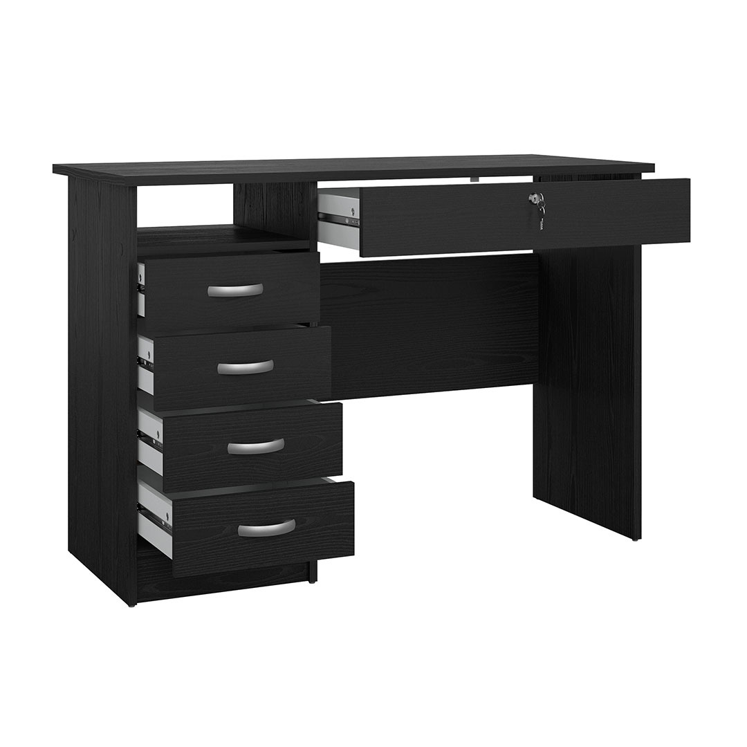ebuy24 FunctionPlus bureau 5 lades, 1 plank zwarte essenhout decor.