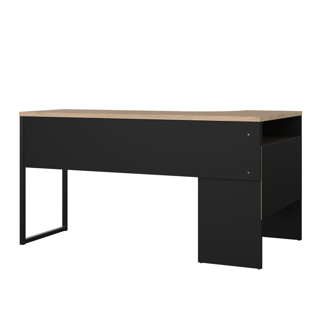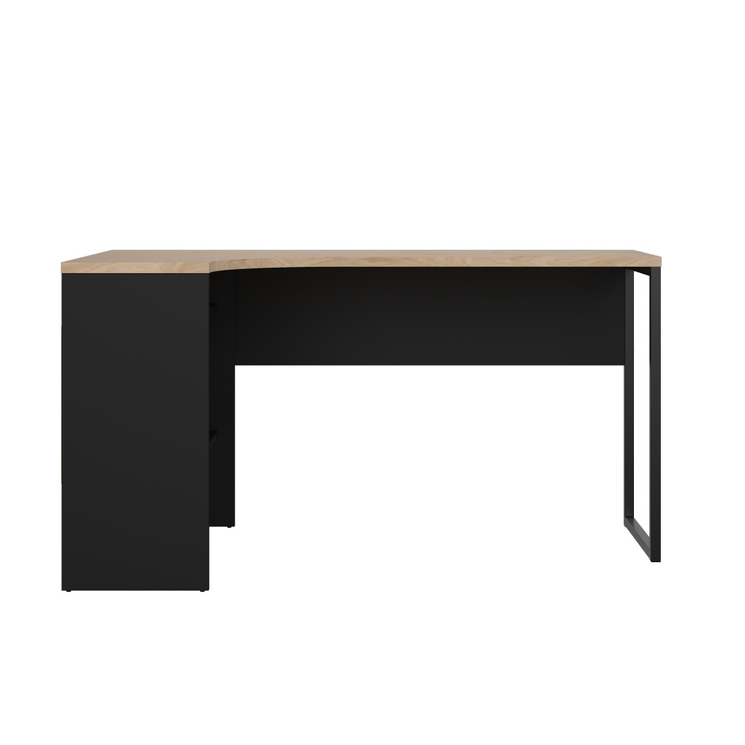 ebuy24 FunctionPlus bureau hoek 3 planken 2 laden okkernoot decor zwart mat.