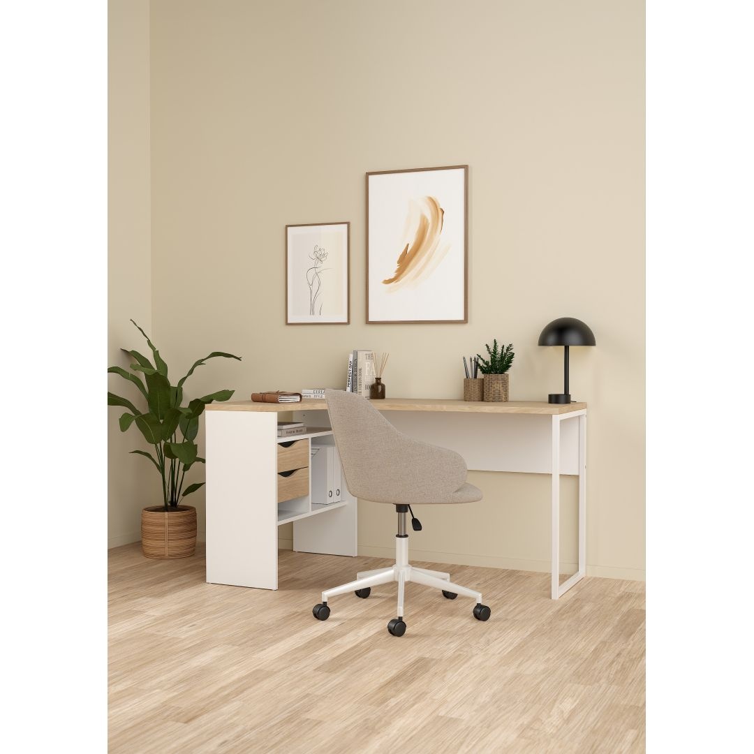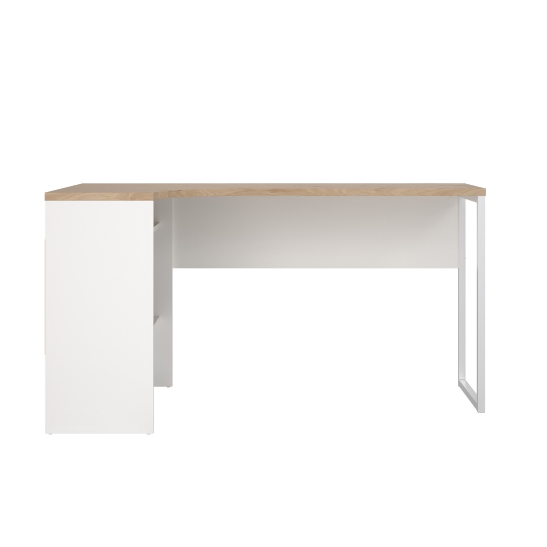 ebuy24 FunctionPlus bureau hoek 3 planken 2 laden okkernoot decor wit.