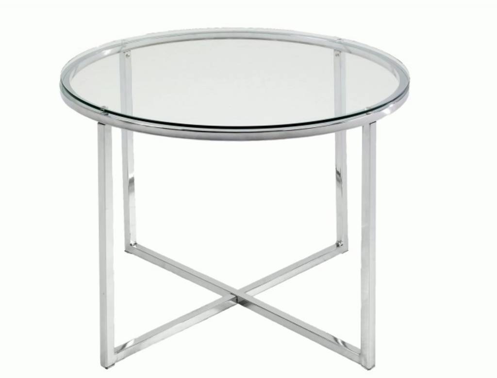 Materiaal: Metaal, tafelblad helder, 5 mm frame chroom.