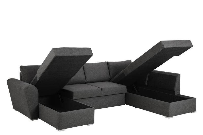 Belangrijkste kenmerken Stan hoekbank slaapbank met chaise longue links en opbergruimte stof grijs: