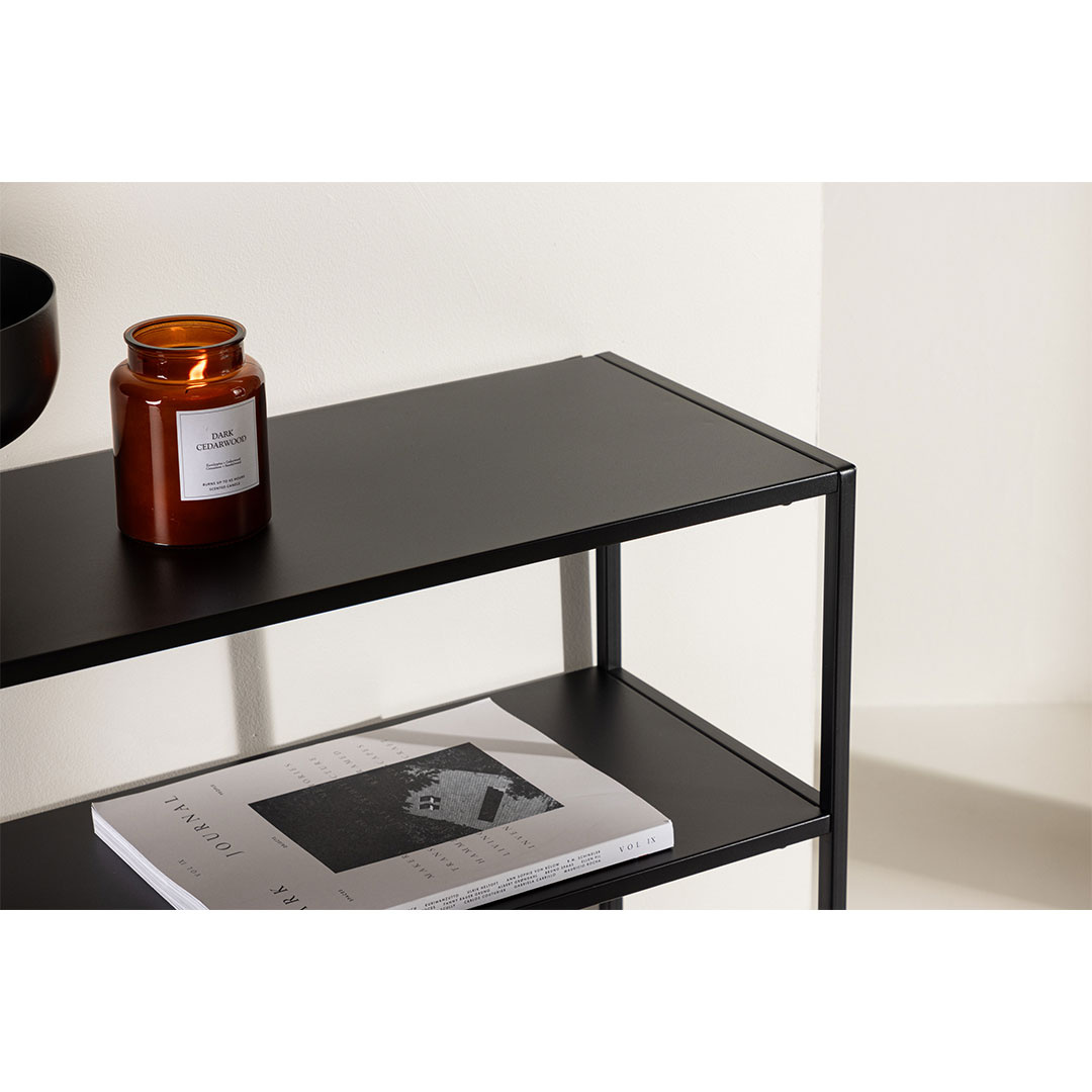 Georgetown consoletafel 1 plank zwart is een consoletafel in de kleur zwart, die zowel stijl als functionaliteit in uw huis brengt. Georgetown consoletafel 1 plank zwart. De Georgetown bijzettafel waar klassieke elegantie en moderne functionaliteit samenkomen! Met deze klassieke bijzettafel in duurzaam zwart staal creëer je eenvoudig een trendy sfeer in je charmante woning, waar je mooiste decoraties en kandelaars de ruimte vinden. Maar hij is uiteraard niet alleen mooi om naar te kijken, hij dient ook een slim doel . Door het slimme ontwerp heeft deze bijzettafel een plank onder het tafelblad, waardoor je extra opbergruimte hebt zonder dat dit ten koste gaat van de stijl. Organiseer je dagelijkse benodigdheden en decoratieve spullen op een elegante manier. Ook het ontwerp is doordacht en volgt de minimalistische trends. Het zwarte staal is zowel duurzaam als eenvoudig te integreren in de meeste interieurstijlen. Creëer een gevoel van persoonlijke stijl en breng uw esthetiek op een elegante manier onder de aandacht. Op deze manier wordt de Georgetown bijzettafel een verlengstuk van uw persoonlijkheid en interieursmaak. Veel beter dan dat wordt het gewoon niet! Dit product is gemaakt met oog voor detail, wat zowel esthetische aantrekkingskracht als hoge duurzaamheid garandeert. Het is ontworpen met zowel functionaliteit als stijl in gedachten, waardoor het de perfecte keuze is voor elke kamer in uw huis. De gebruikte materialen zijn van hoge kwaliteit, waardoor het product een lange levensduur heeft en bestand is tegen dagelijks gebruik. Of het nu voor opslag is of als decoratieve toevoeging, dit product zal uw interieur naar een hoger niveau tillen en extra comfort en elegantie in uw huis brengen.