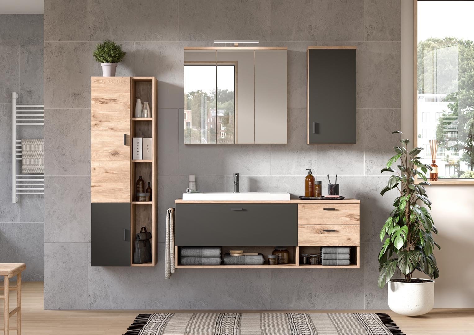 ebuy24 Grado spiegelkast 3 deuren mat grijs,eik decor.