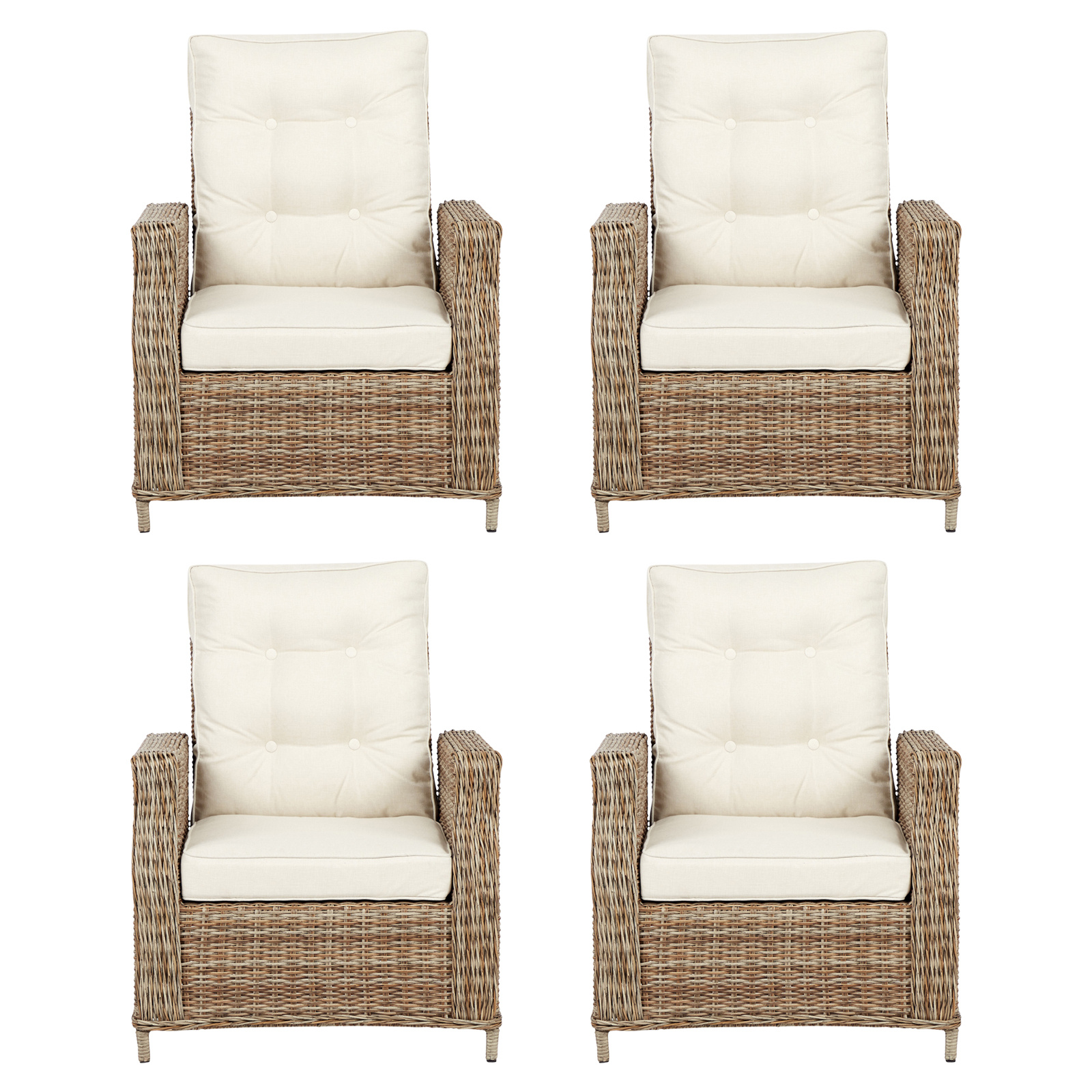 ebuy24 Gram 4 x tuinstoel polyrattan met kussen natuur.