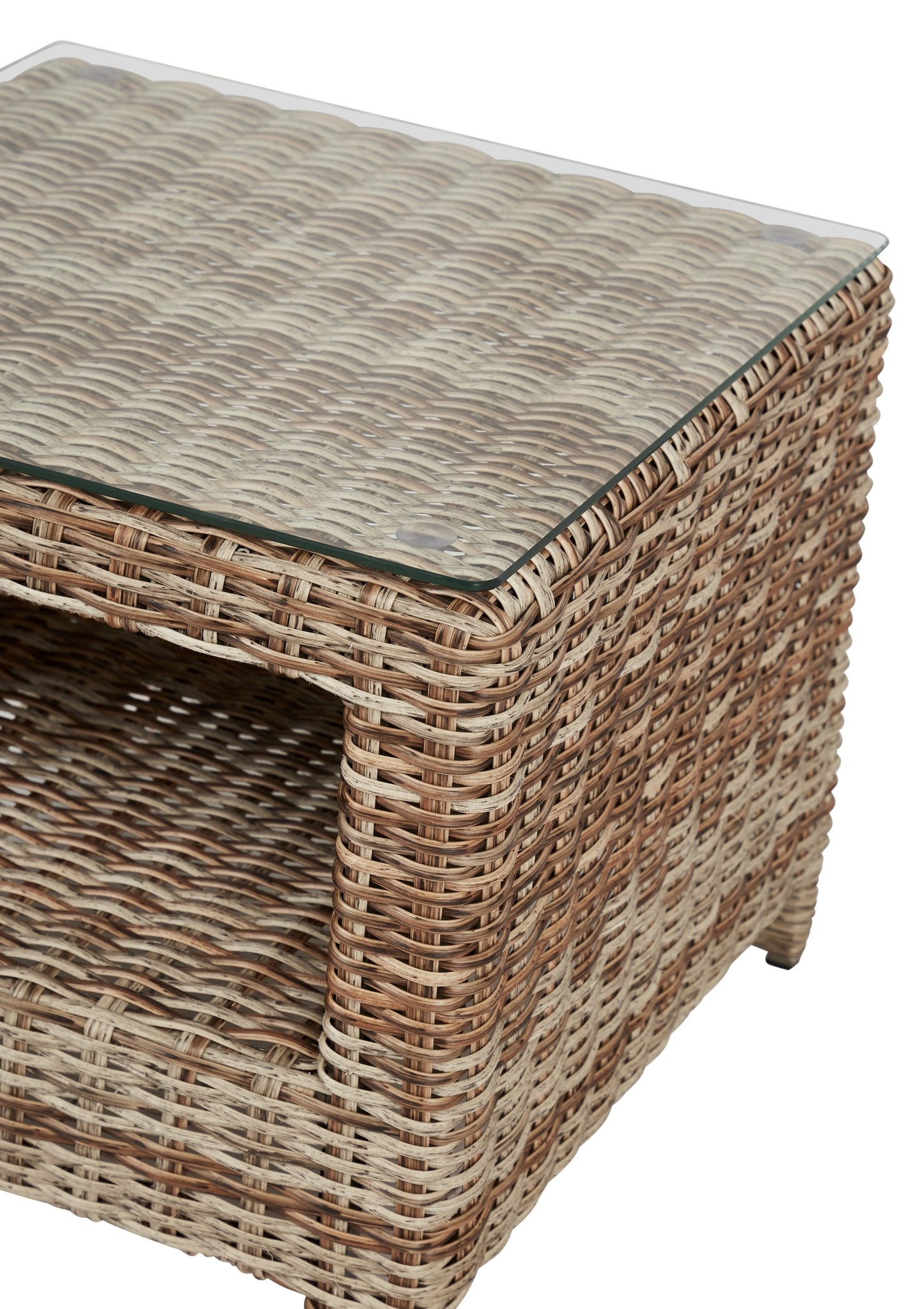 Materiaal: Aluminium, rotan, glas. Rattan=Polyrattan.