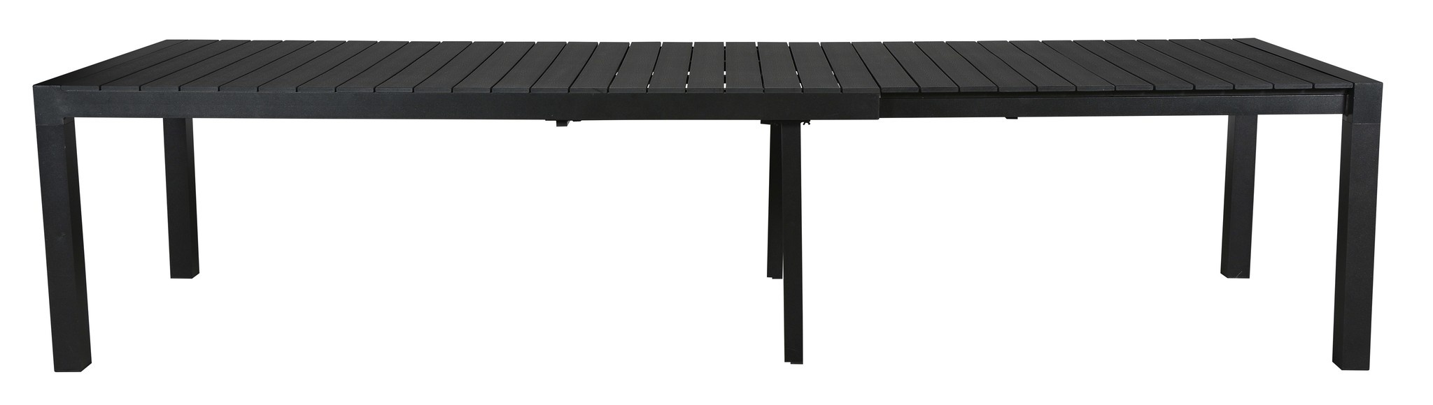 Grup tuintafel, incl. 2 inlegplaten 223-343 cm zwart/zwart.