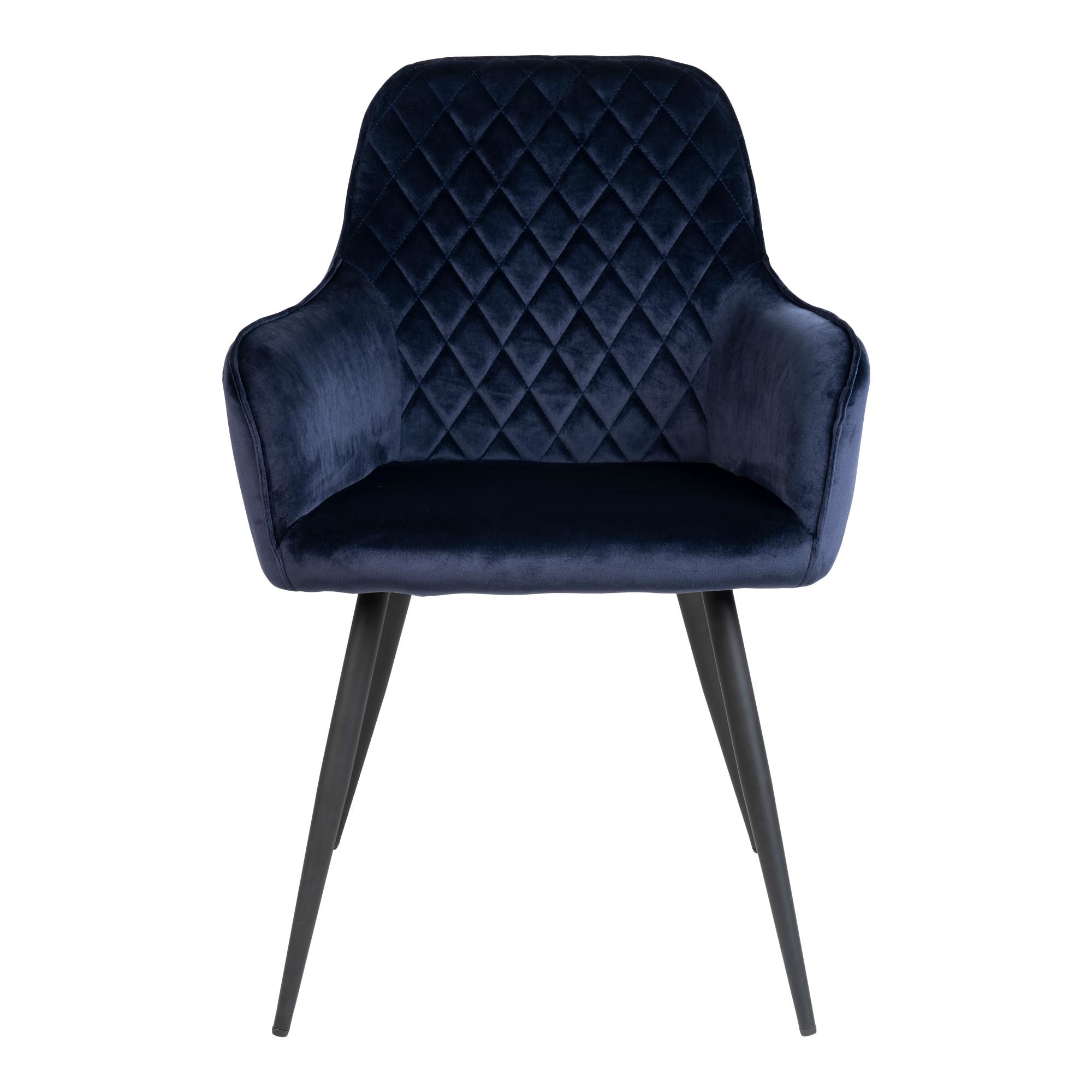 Hasse eetkamerstoel velours, blauw. Zithoogte: 47 cm. Zitdiepte: 47 cm.