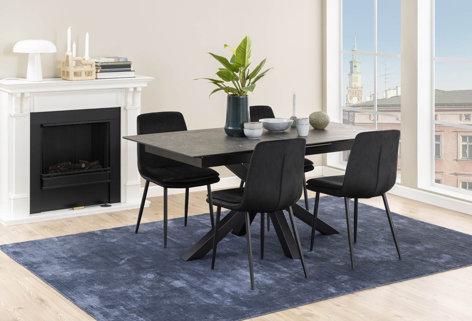 ebuy24 Heave eetkamertafel ruw keramiek, met 1 extra plaat, 90x168/210cm zwart.