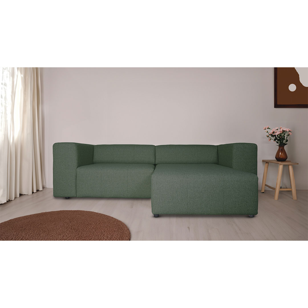 Heaven bank met chaise longue rechts of links gedraaid groen. Hoes Rating "colour fastness to light": 5. Hoes Rating "pilling": 4-5."Pilling", Opvulling van de stof, gaat van 0-5, waar 5 het beste is. "Colour fastness to light", Kleurechtheid, gaat van 1-8, waar 8 het beste is. Heaven Sofa met Chaiselong - Rechts gericht, links gericht groen. De Heaven bank met chaise longue in een prachtige groene kleur voegt een frisse en levendige sfeer toe aan elk huis. Deze bank is ideaal voor het hele gezin, waar voldoende ruimte is voor ontspanning en gezelligheid. De zitting is opgevuld met PU-schuim, wat zorgt voor een stevige en stabiele ondersteuning, terwijl de gewatteerde rugkussens gevuld met korrels zorgen voor extra zacht comfort voor de rug.Met zijn strakke stijl en klassieke uitstraling past de Heaven bank in de meeste woningen en creëert tegelijkertijd een eyecatcher in de woonkamer. Het is de perfecte setting voor een familiebijeenkomst - er is niets beters dan achterover op de bank te leunen, uw benen omhoog te leggen en te genieten van een rustig moment. Of je nu alleen bent en wilt ontspannen, of vrienden op bezoek hebt voor een gezellig samenzijn, de Heaven bank is de voor de hand liggende keuze.Deze grote bank heeft een tijdloze vorm waardoor hij gemakkelijk in elk huis past, ongeacht stijl en inrichting. De strenge poten, die mooi afsteken tegen de rechte lijnen van de bank, geven een elegante en complete uitstraling.Kies de versie van de Heaven bank die het beste bij uw woning en uw smaak past. Houd jij van een stoere, minimalistische look, of wil je juist een warmere, klassieke look? Hoe dan ook, de Heaven bank brengt zowel comfort als stijl in je woonkamer.