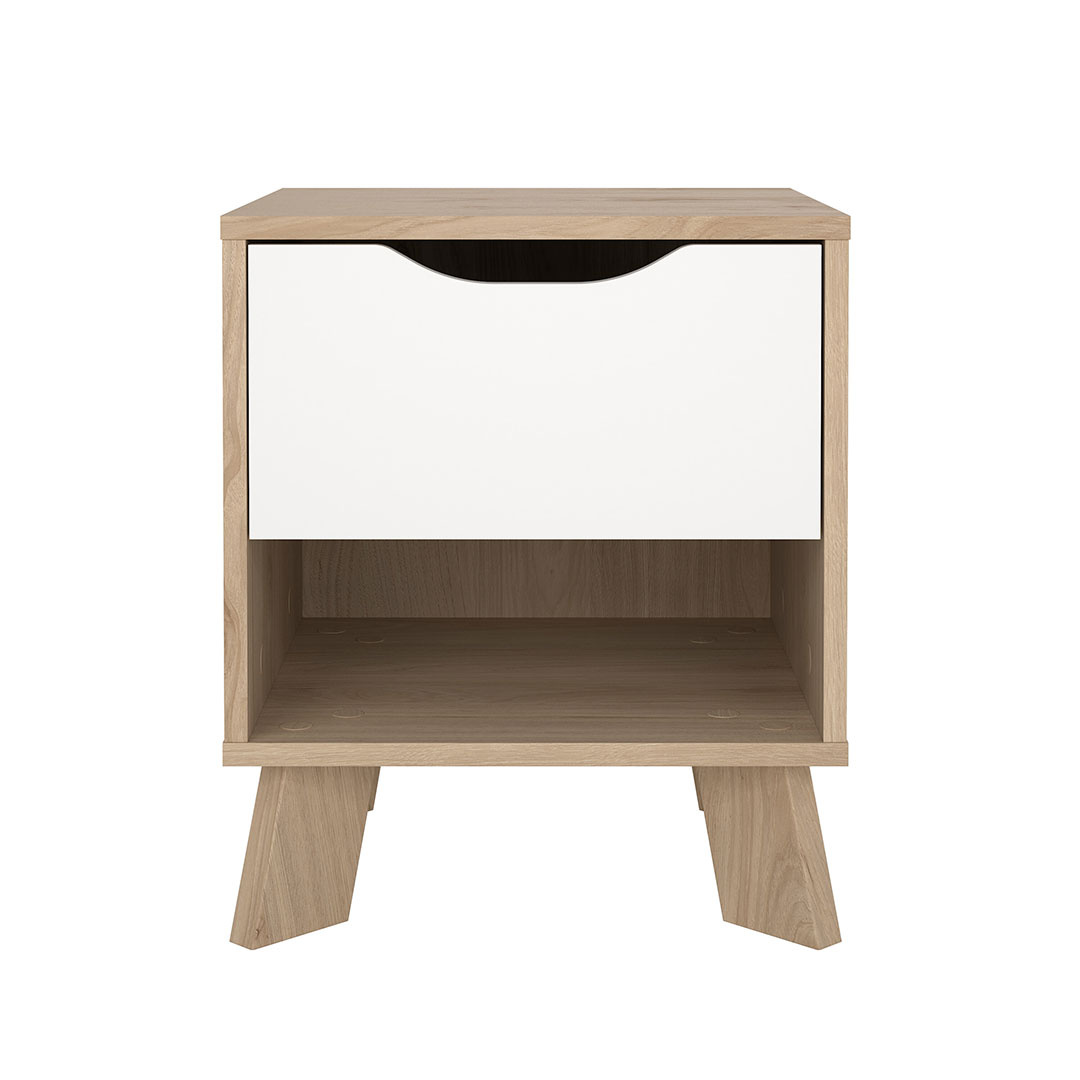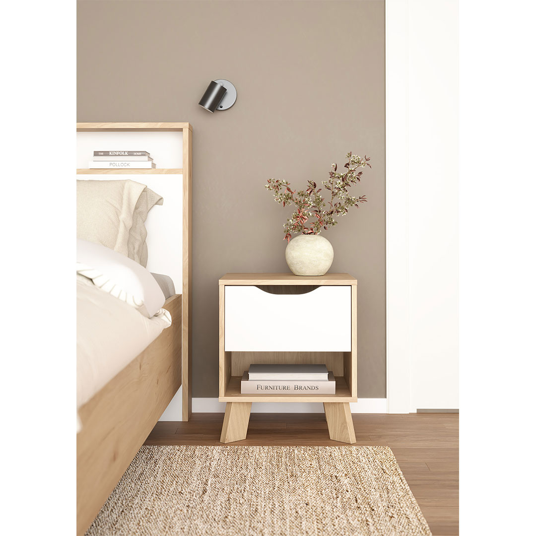 ebuy24 Ikast nachtkastje 1 lade, 1 plank eiken decor, wit.