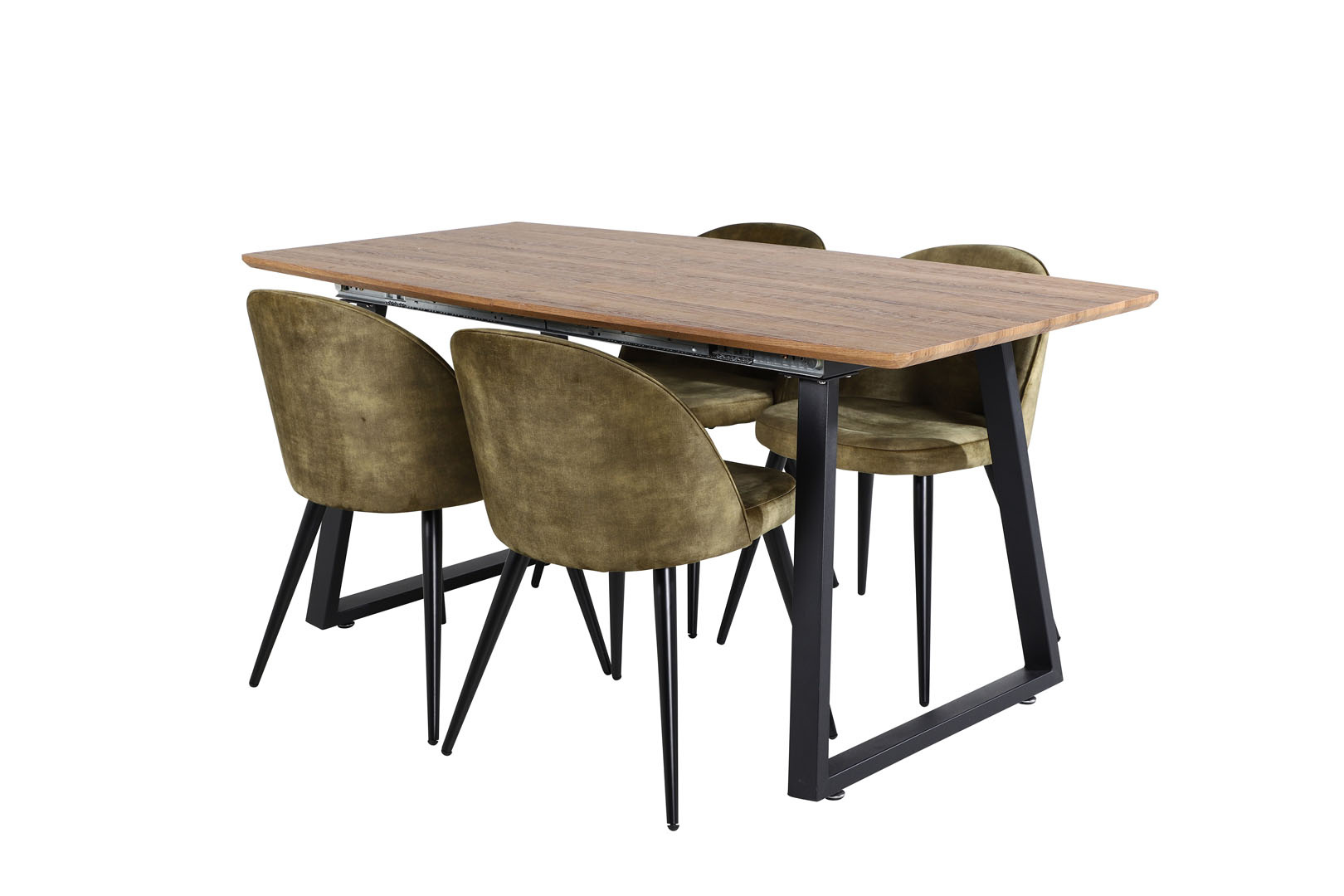 ebuy24 IncaNABL eethoek eetkamertafel uitschuifbare tafel lengte cm 160 / 200 el hout decor en 4 Velvet eetkamerstal velours groente, zwart.