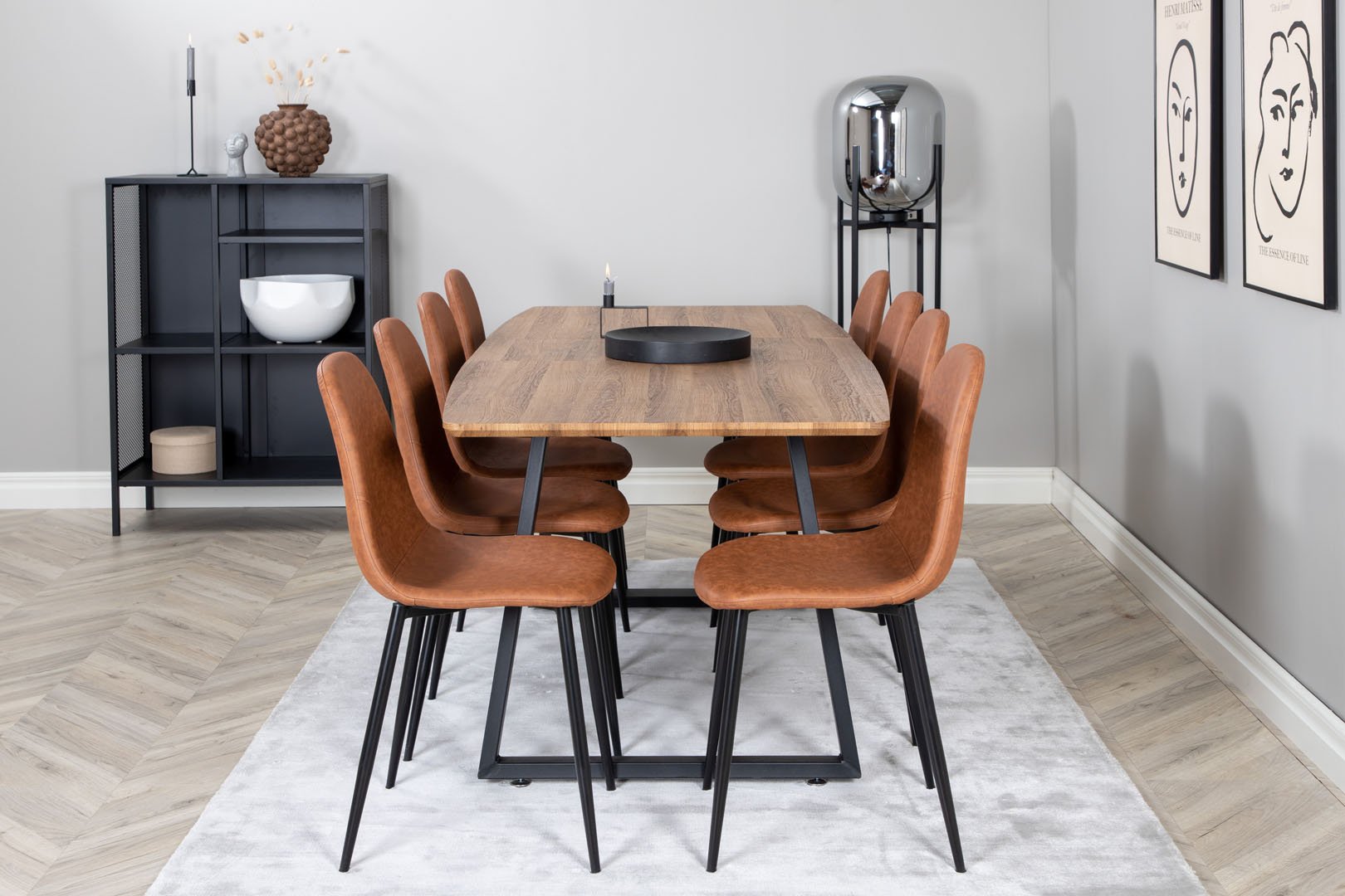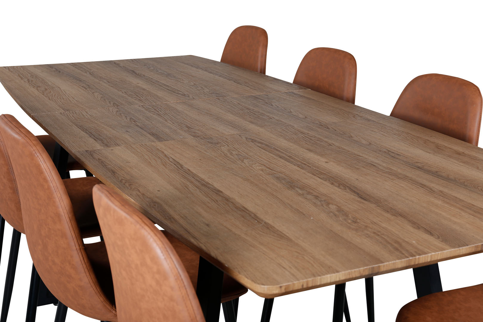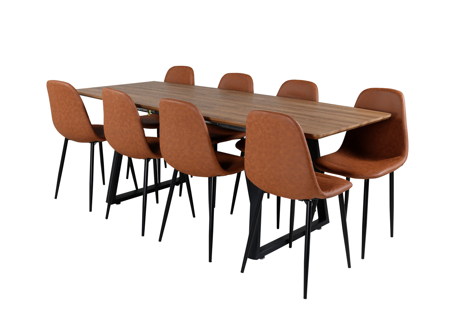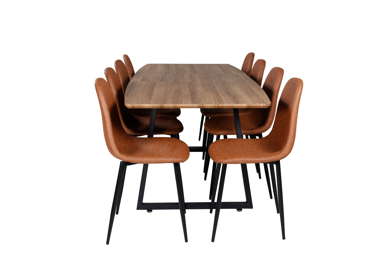 ebuy24 IncaNABL eethoek eetkamertafel uitschuifbare tafel lengte cm 160 / 200 el hout decor en 8 Polar eetkamerstal PU kunstleer bruin.