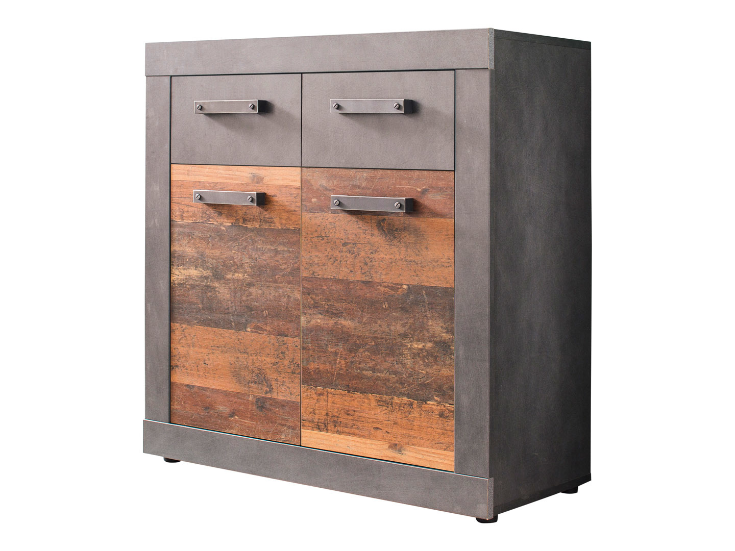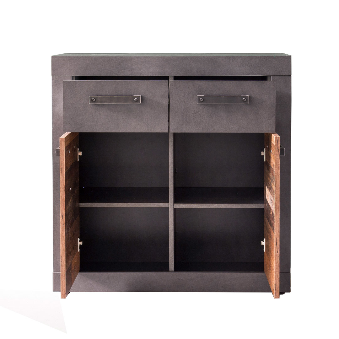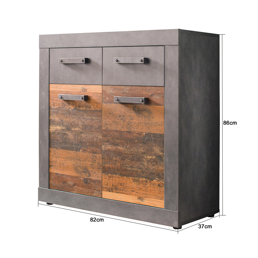 Indy kommode 2 deuren, 2 laden grijs eiken decor, oud houten decor.