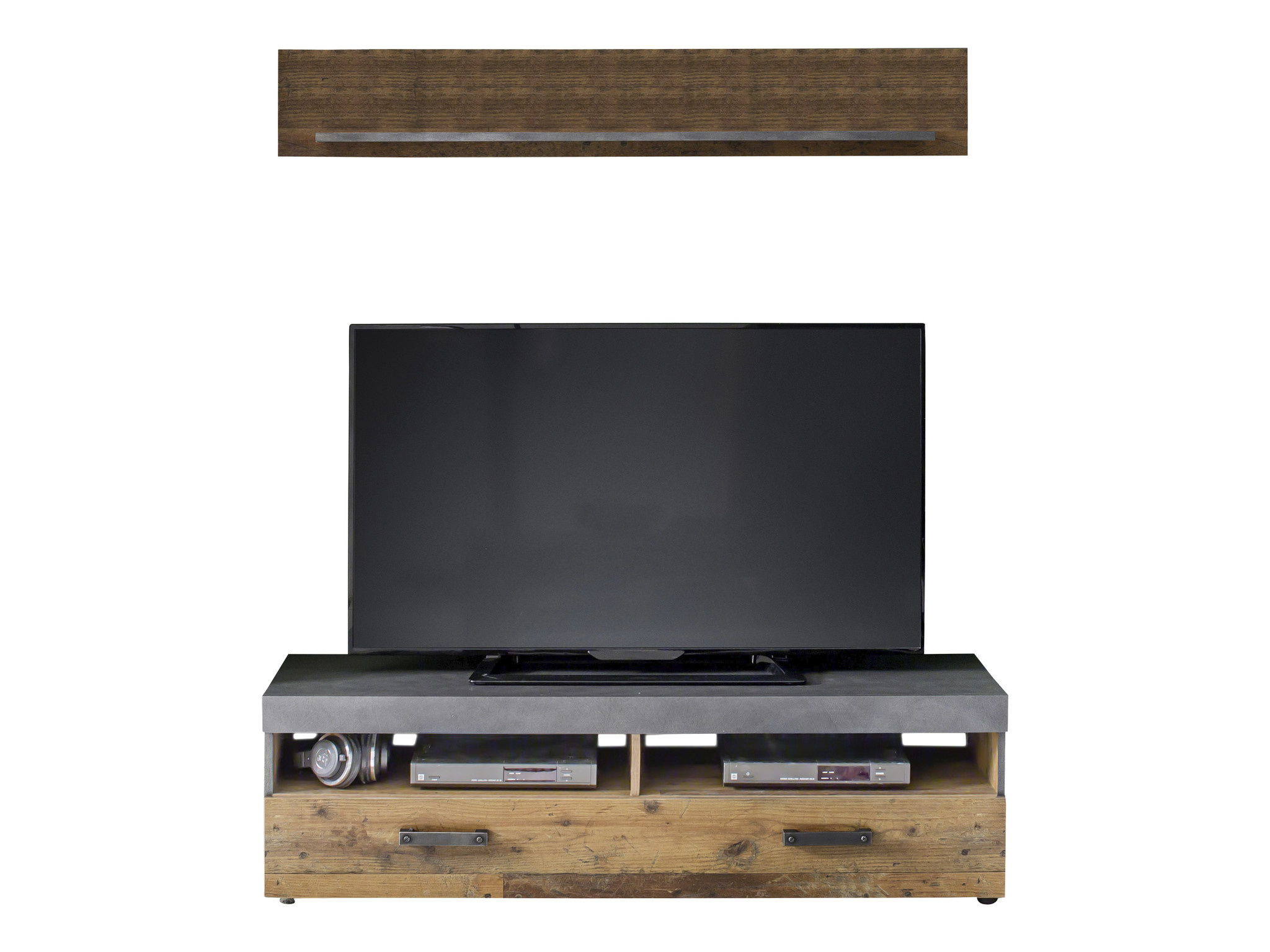 Verlichting is niet inbegrepen. Houten materialen zijn FSC-gecertificeerd. Zie evt. accessoires, glazen plank voor TV met artikelnr. 1100.999.00.