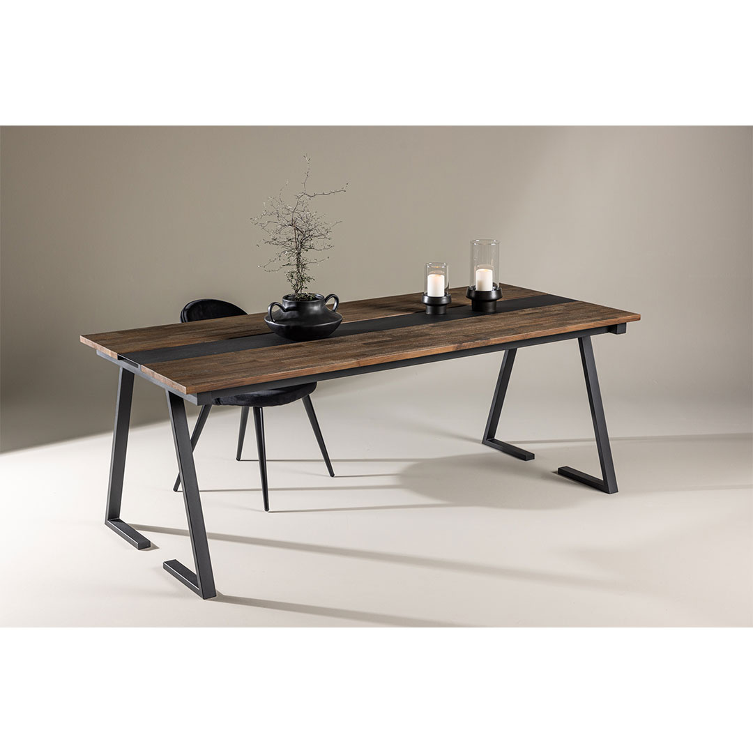 Jakarta eettafel 90x200cm zwart is een eettafel in de kleur zwart die zowel stijl als functionaliteit in huis brengt. Jakarta eettafel 90x200cm zwart. Elegant en rustiek! Jakarta - een prachtige teakhouten eettafel met een decoratieve zwart metalen plaat in het midden van de tafel. Het ontwerp is goed doordacht in moderne vormen en aardse kleuren. Nodig vrienden en familie uit voor vele prachtige momenten in de toekomst - er is hier ruimte voor velen! Onderhoudstips: Voor de dagelijkse reiniging van teakhouten meubelen binnenshuis is een droge doek de beste oplossing. Gebruik voor eventuele vlekken een vochtige, niet natte doek en droog deze onmiddellijk. Zowel oplosmiddelen als bleekmiddelen moeten worden vermeden, omdat ze de afwerking van het teakoppervlak kunnen vernietigen. Zorg ervoor dat u het oppervlak beschermt met een onderlaag om vlekken door gemorste vloeistof en hete voorwerpen te voorkomen. Dit product is gemaakt met oog voor detail, wat zowel esthetische aantrekkingskracht als hoge duurzaamheid garandeert. Het is ontworpen met zowel functionaliteit als stijl in gedachten, waardoor het de perfecte keuze is voor elke kamer in uw huis. De gebruikte materialen zijn van hoge kwaliteit, waardoor het product een lange levensduur heeft en bestand is tegen dagelijks gebruik. Of het nu voor opslag is of als decoratieve toevoeging, dit product zal uw interieur naar een hoger niveau tillen en extra comfort en elegantie in uw huis brengen.