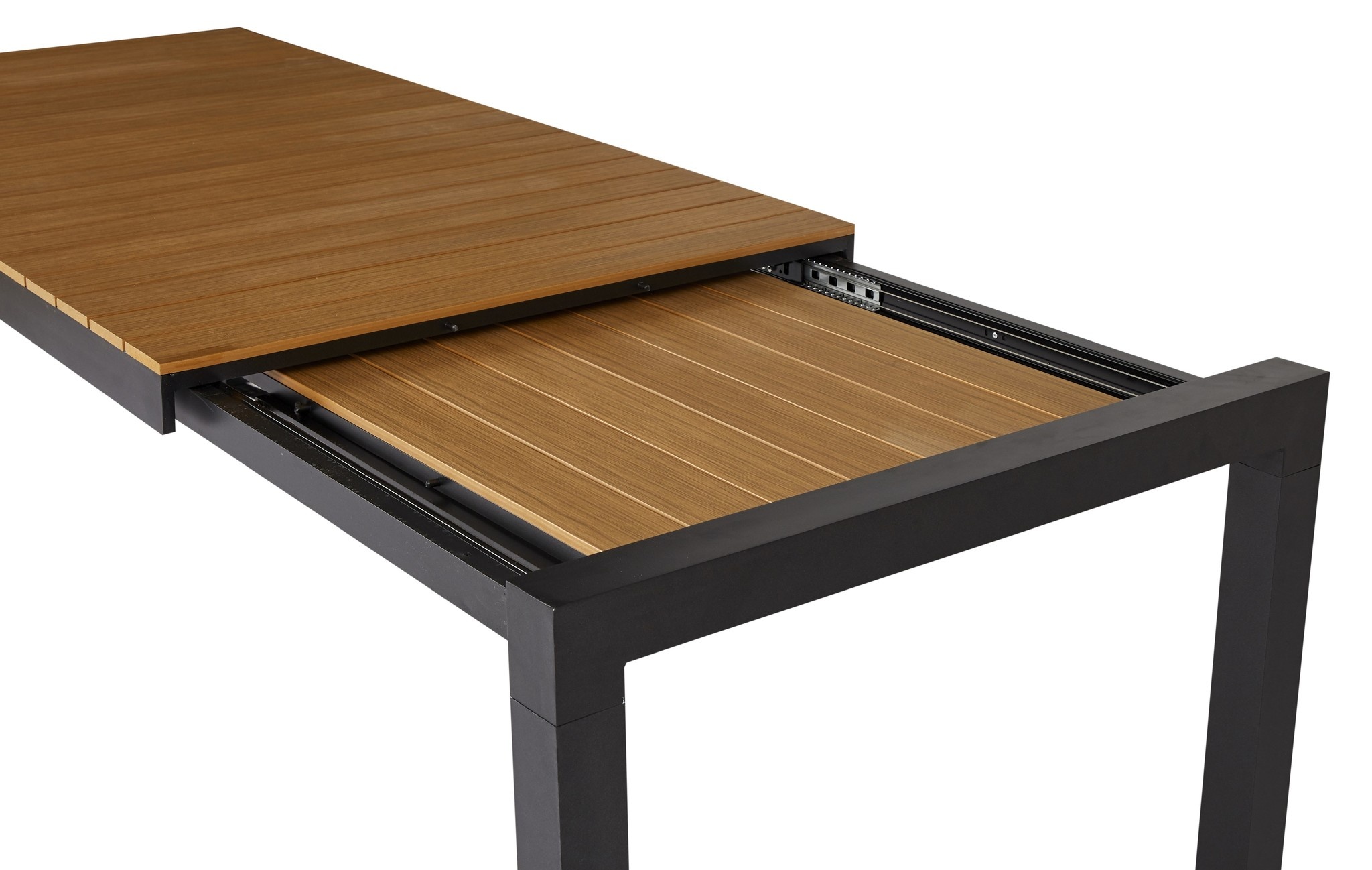 Joan tuintafel 205-275 x 100 cm, met verlenging incl. 1 blad, zwart en teak decor.