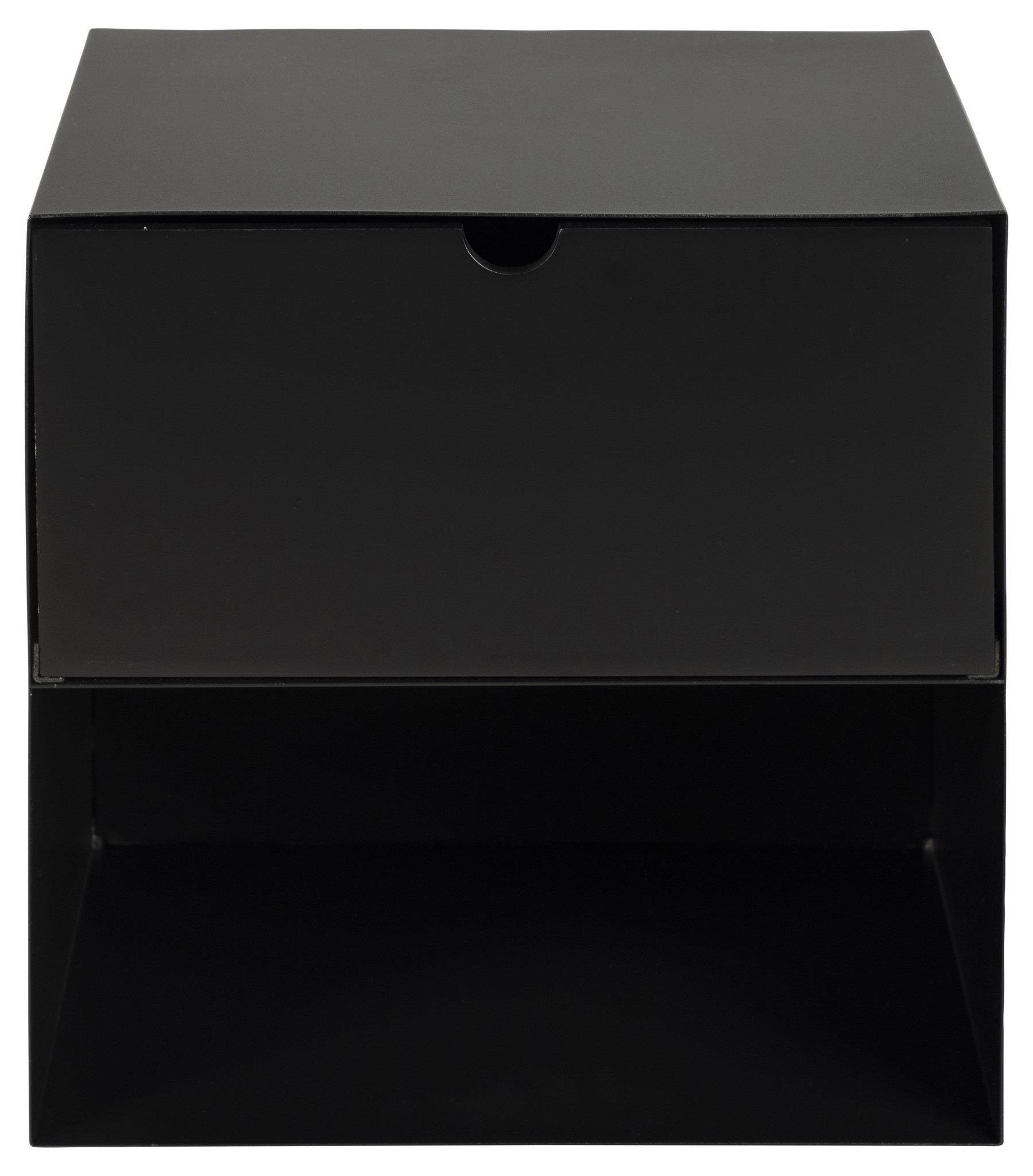 Joliet nachtkastje wandbevestiging met 1 plank en 1 lade zwart.