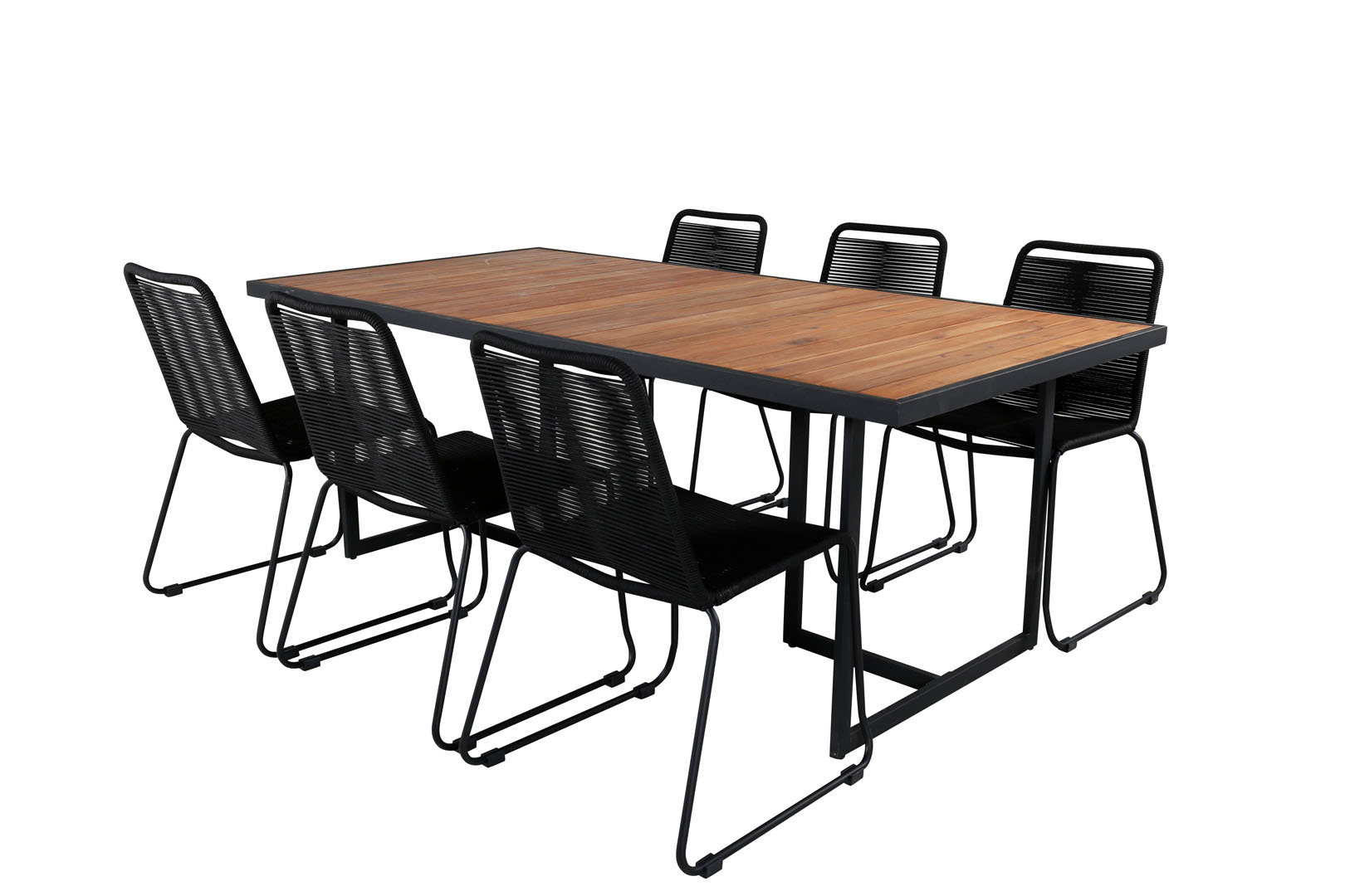 Khung tuinmeubelset tafel 100x200cm en 6 stoel stapel Lindos zwart, naturel.