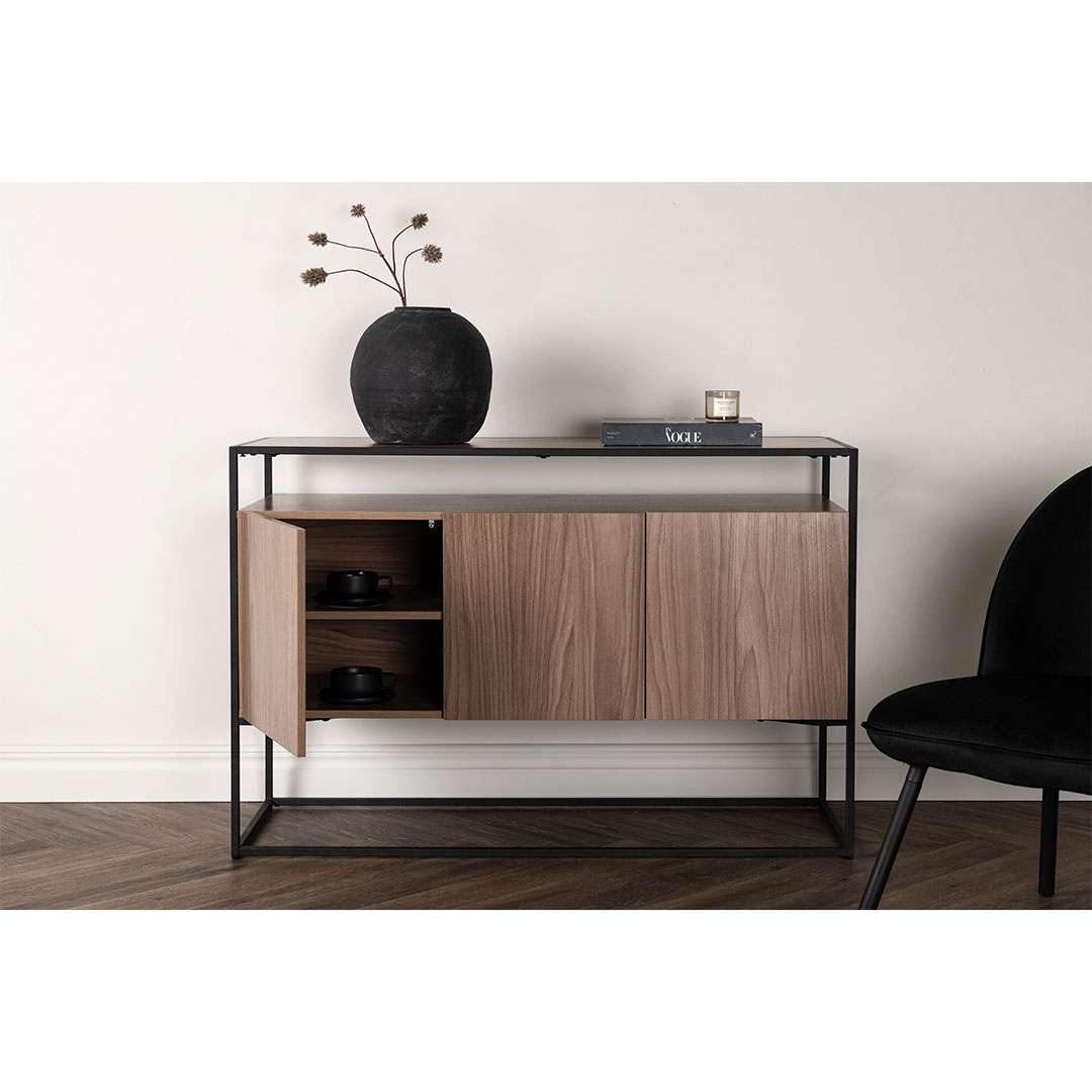 Kingsport dressoir 3 deuren walnoot decor is een dressoir in de kleur Walnut Decor, dat zowel stijl als functionaliteit in uw huis brengt. Kingsport dressoir 3 deuren walnoot decor. De Kingsport salontafel maakt zowel verborgen als zichtbare opbergruimte mogelijk en is even praktisch als stijlvol! Dankzij het royale formaat en de drie planken is er voldoende ruimte voor allerlei slimme en stijlvolle opbergers. Uitgevoerd in walnootkleurig MDF met een zwart stalen frame. Het minimalistische frame geeft een stijlvolle indruk en maakt het bovendien gemakkelijk om te stofzuigen. Versier het tafelblad met mooie decoraties en kandelaars en vul de lade met alles waar jij ruimte voor wilt hebben! Dit product is gemaakt met oog voor detail, wat zowel esthetische aantrekkingskracht als hoge duurzaamheid garandeert. Het is ontworpen met zowel functionaliteit als stijl in gedachten, waardoor het de perfecte keuze is voor elke kamer in uw huis. De gebruikte materialen zijn van hoge kwaliteit, waardoor het product een lange levensduur heeft en bestand is tegen dagelijks gebruik. Of het nu voor opslag is of als decoratieve toevoeging, dit product zal uw interieur naar een hoger niveau tillen en extra comfort en elegantie in uw huis brengen. Dit product is gemaakt met oog voor detail, wat zowel esthetische aantrekkingskracht als hoge duurzaamheid garandeert.