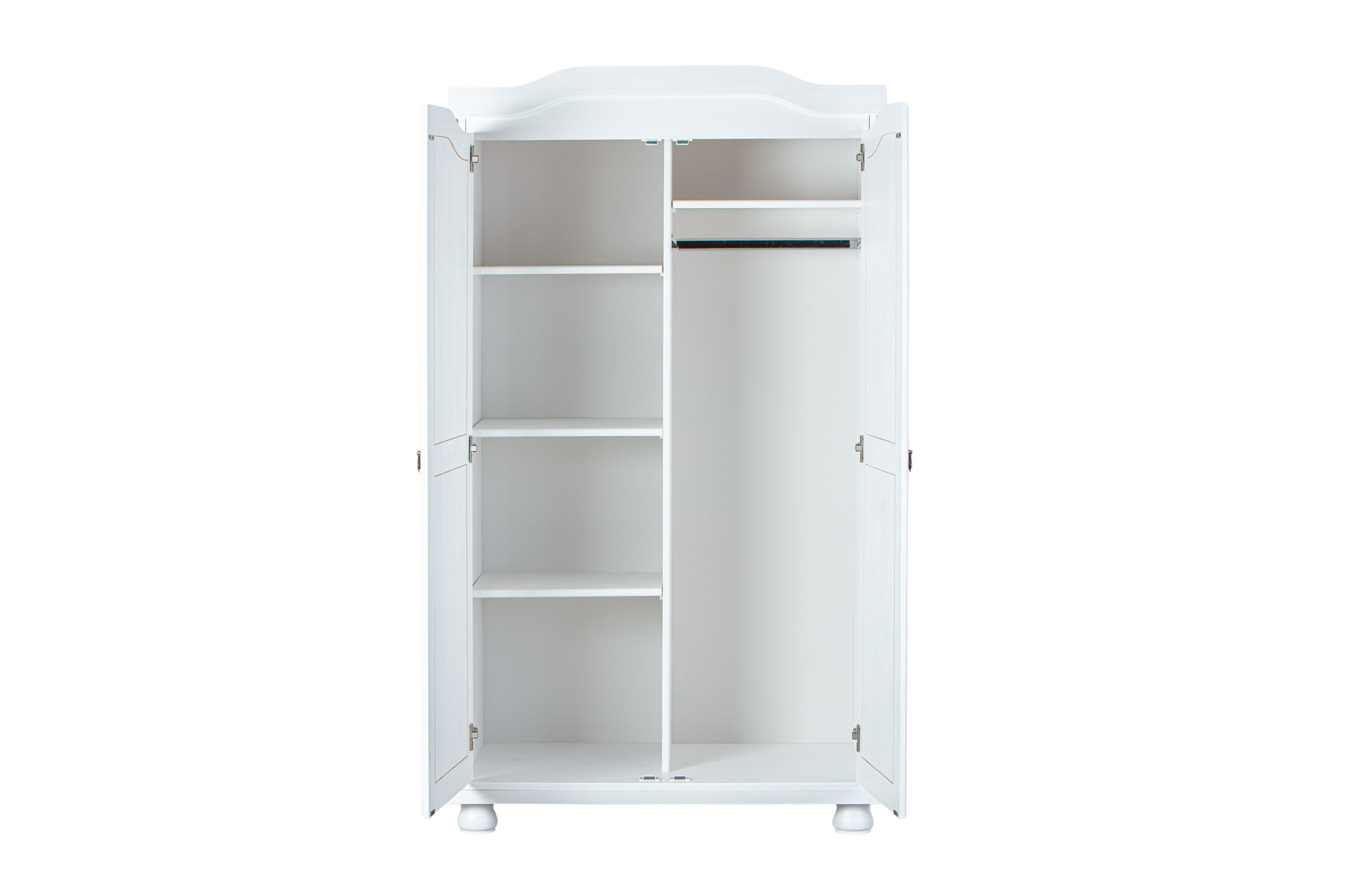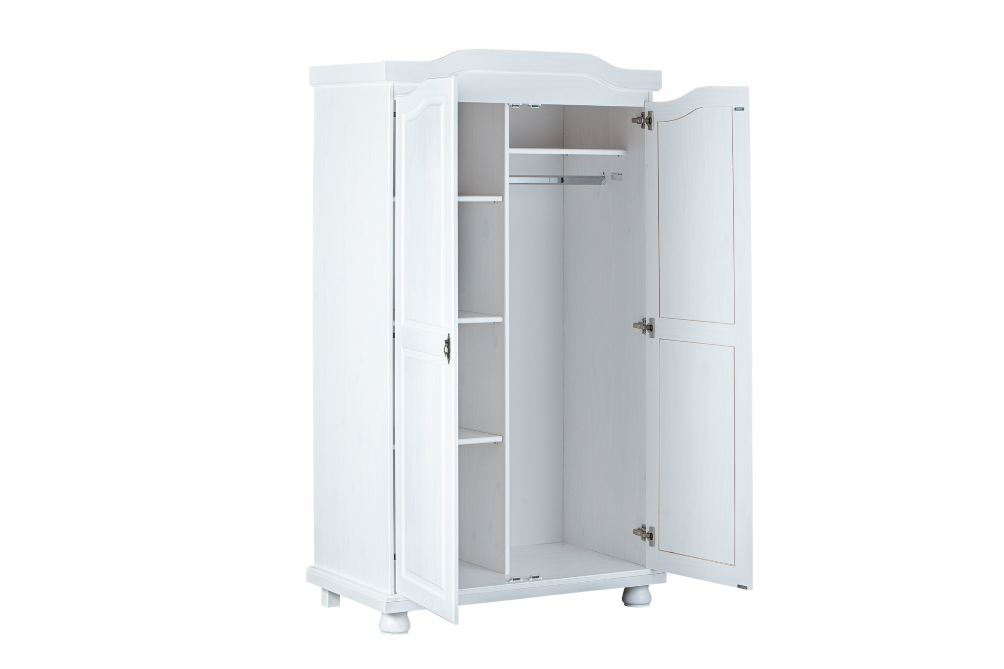 Massieve witte grenen tweedeurs kledingkast met mooie handgrepen. De kledingkast Hedda past zeer goed bij de wit gelakte tienerbedden uit ons assortiment eenpersoonsbedden. ...Lees uitgebreide product informatie