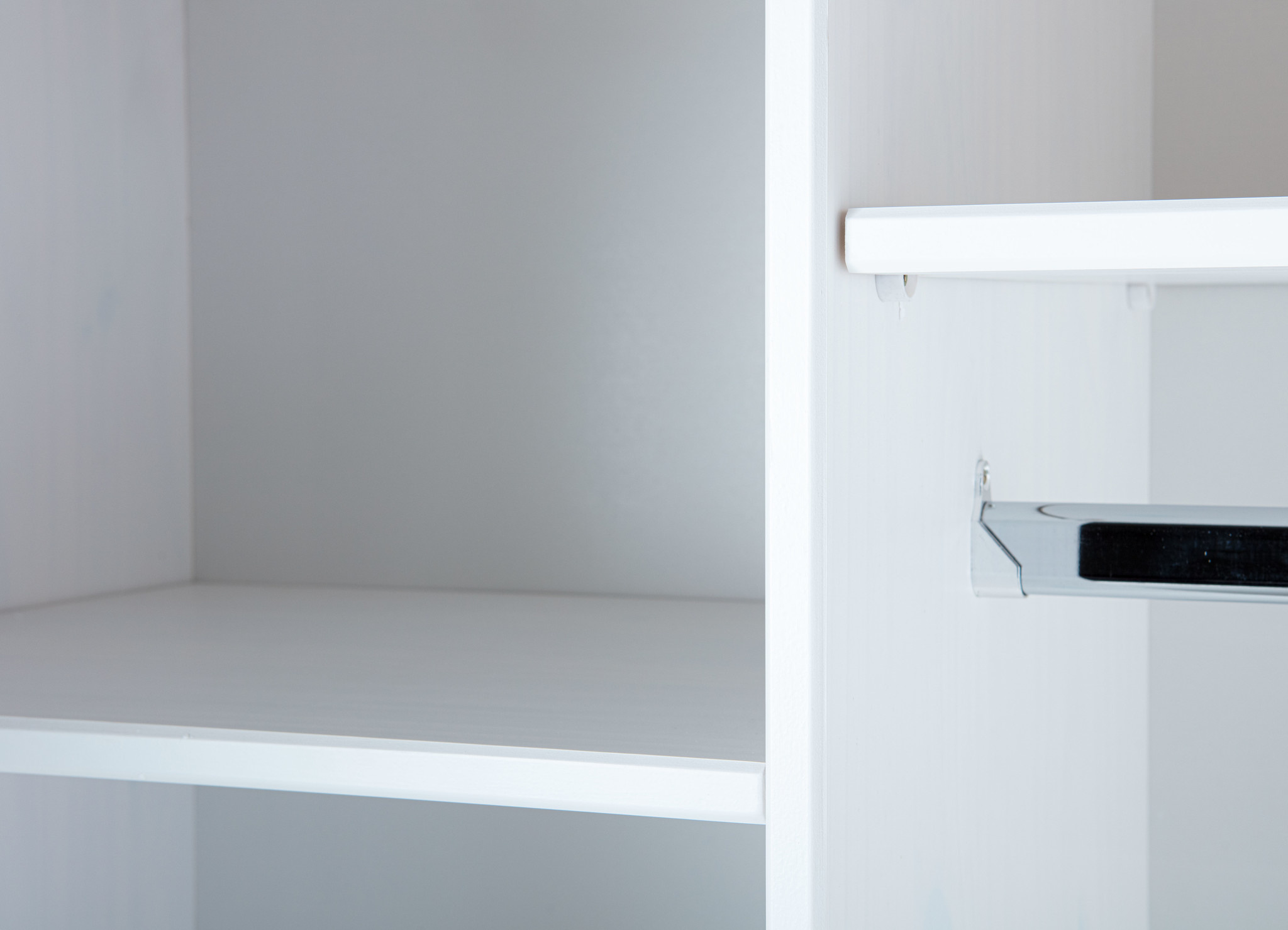 Achter de ene deur: 1 kledingstang en 1 legplank